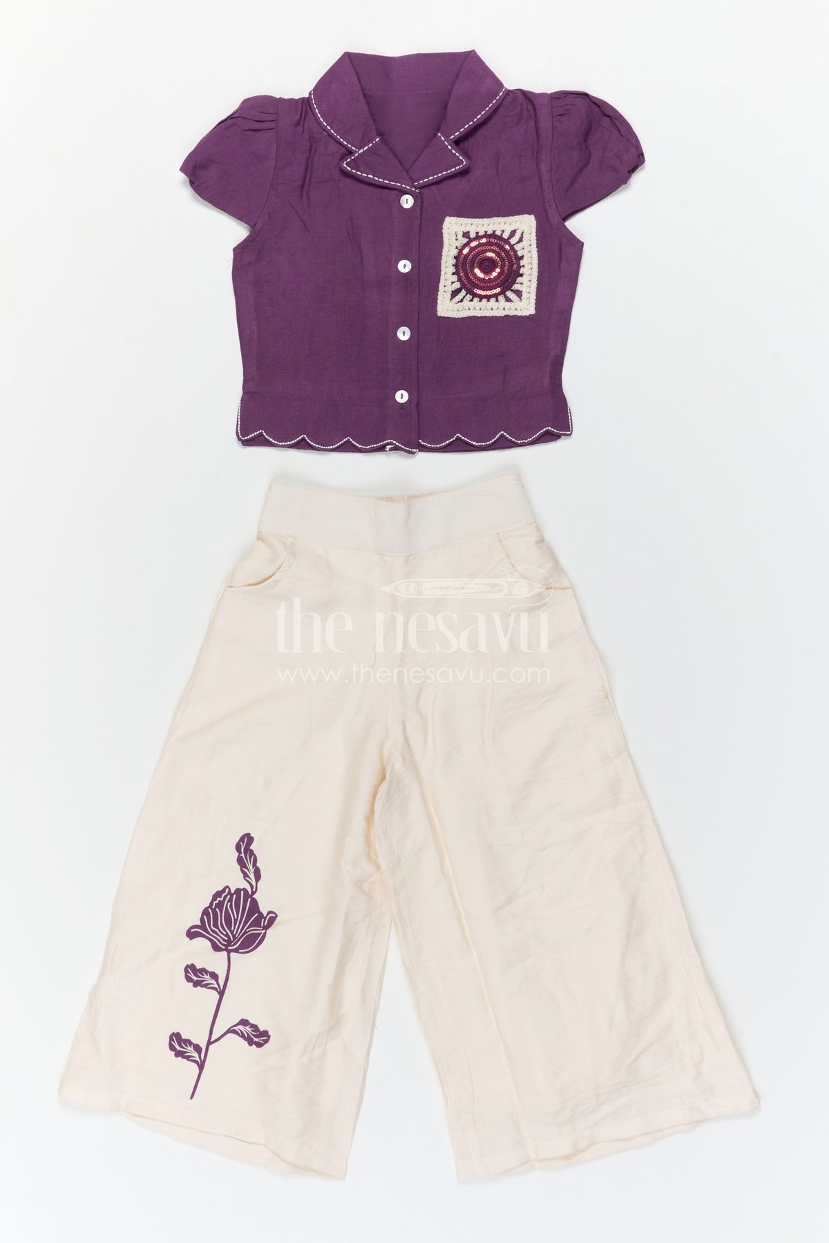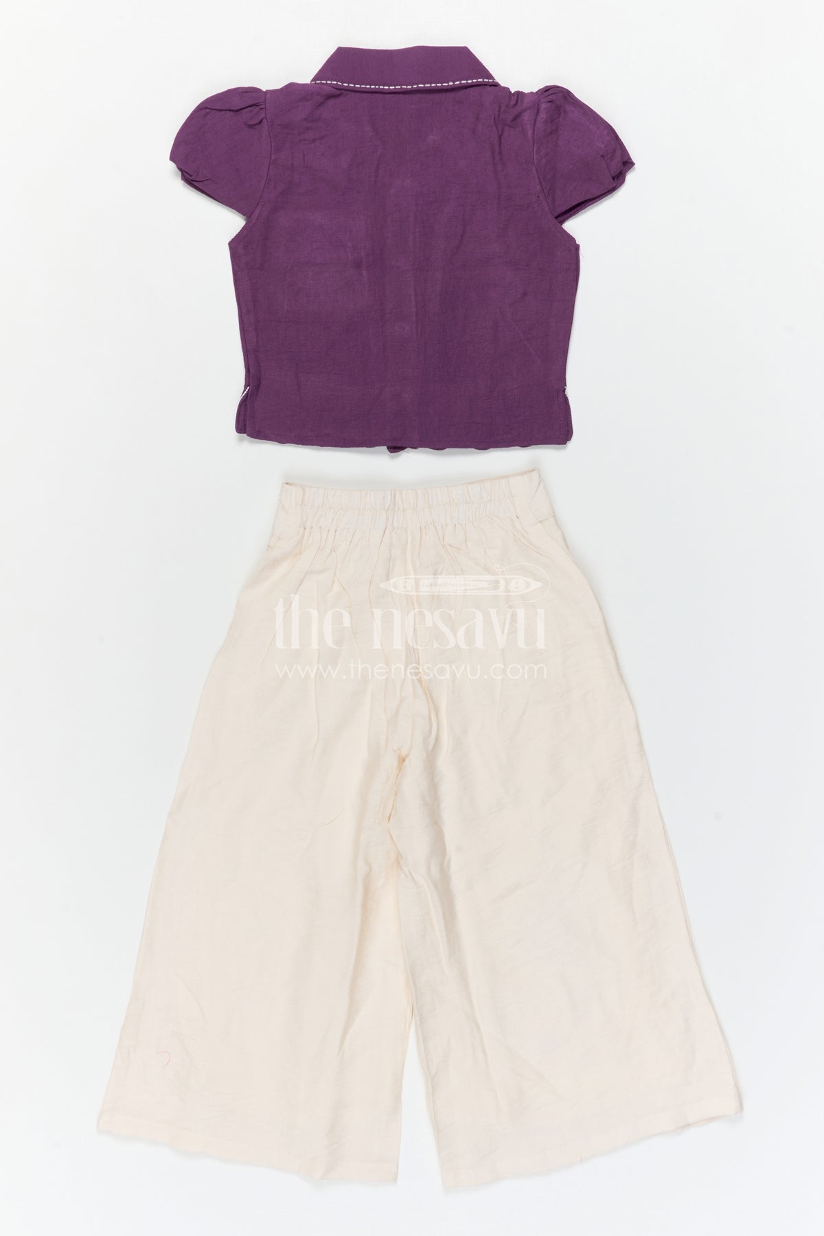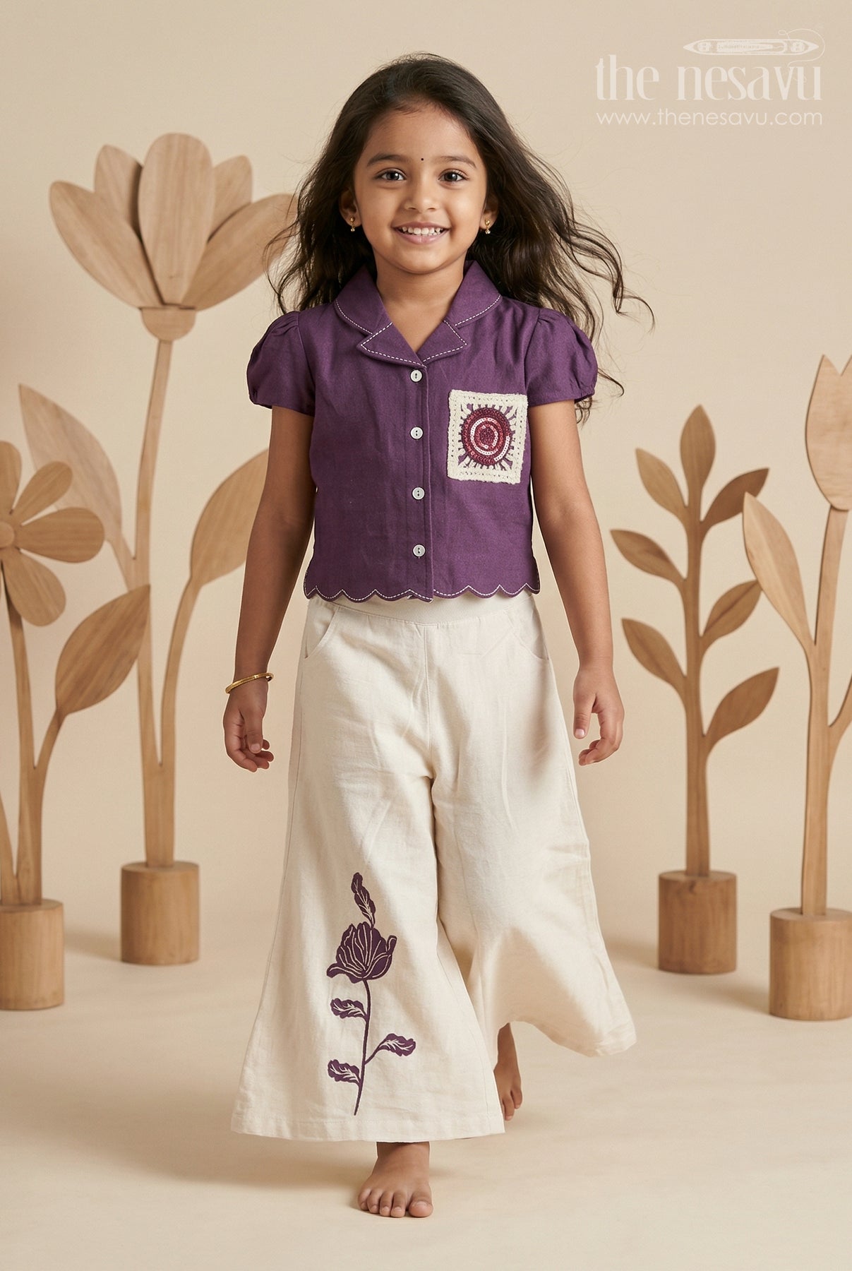 The Nesavu Girls Sharara / Plazo Set Girls Sharara Set for Festive Occasions and Family Functions Nesavu 24 (5Y) / Purple / Cotton GPS1043A-24 Nesavu Girls Sharara Set For Festive Occasions And Family Functions In Soft Cotton Blend Ethnic Wear