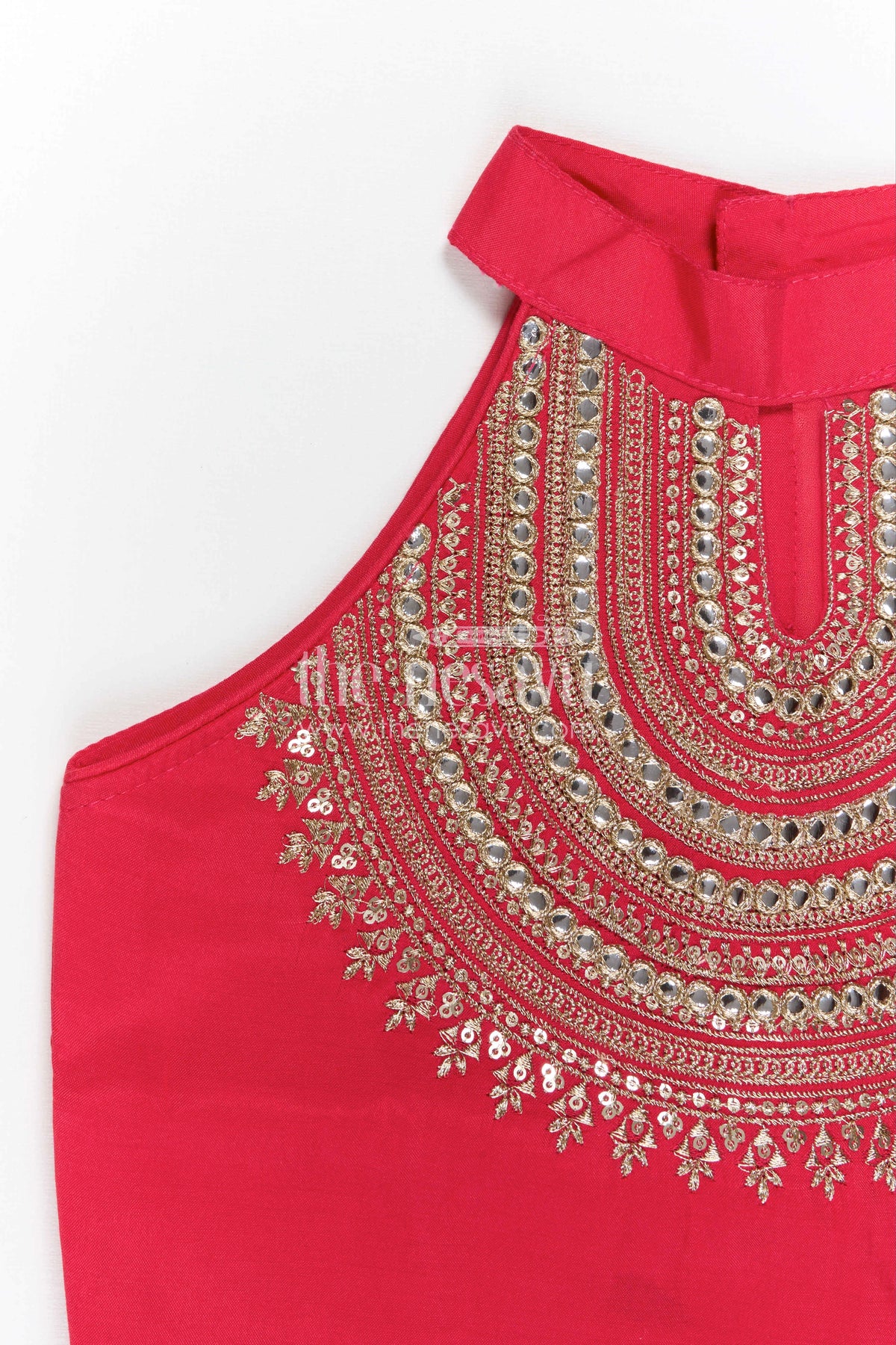 • Features a designer embroidered yoke with intricate patterns that enhance the festive look