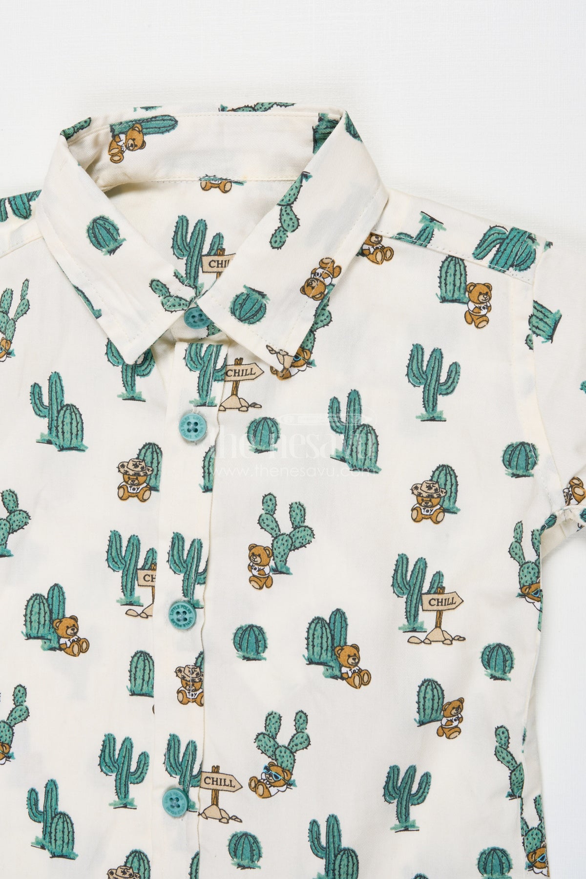 The Nesavu Boys Casual Set Boys Cactus Print Shirt with Beige Pants – Casual Cotton Set Nesavu Nesavu boys cotton casual set with cactus print shirt and beige pants