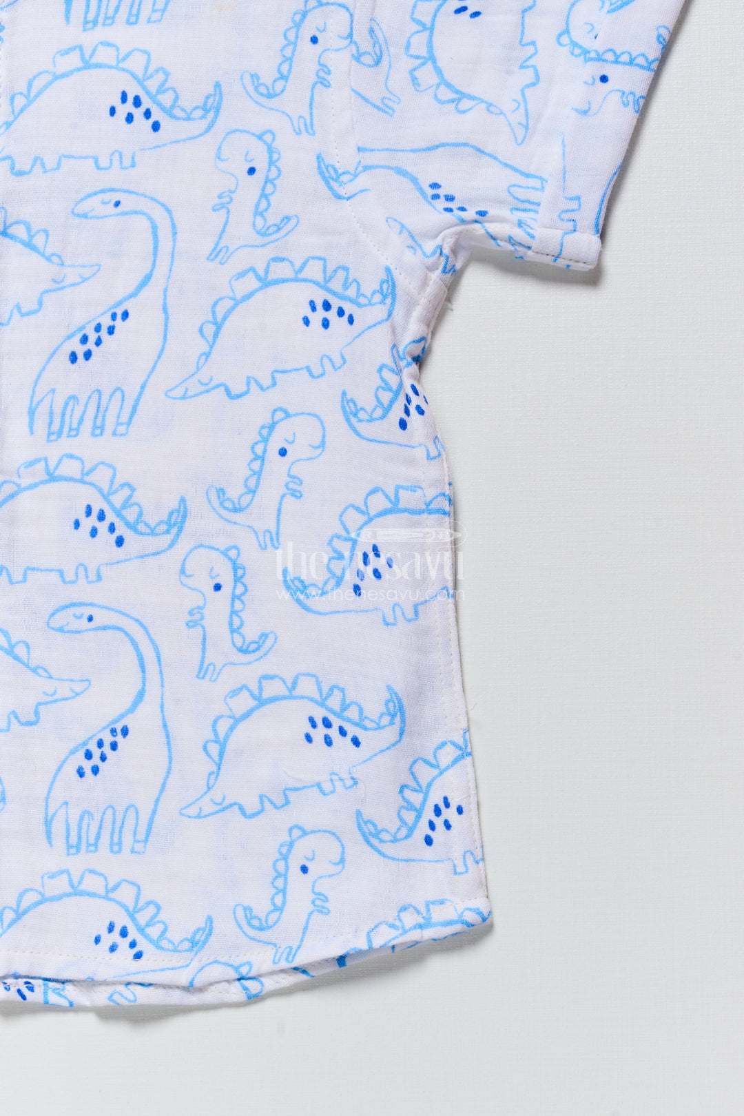 - This boys muslin cotton shirt brings prehistoric fun to daily wear with a dinosaur-themed digital print
