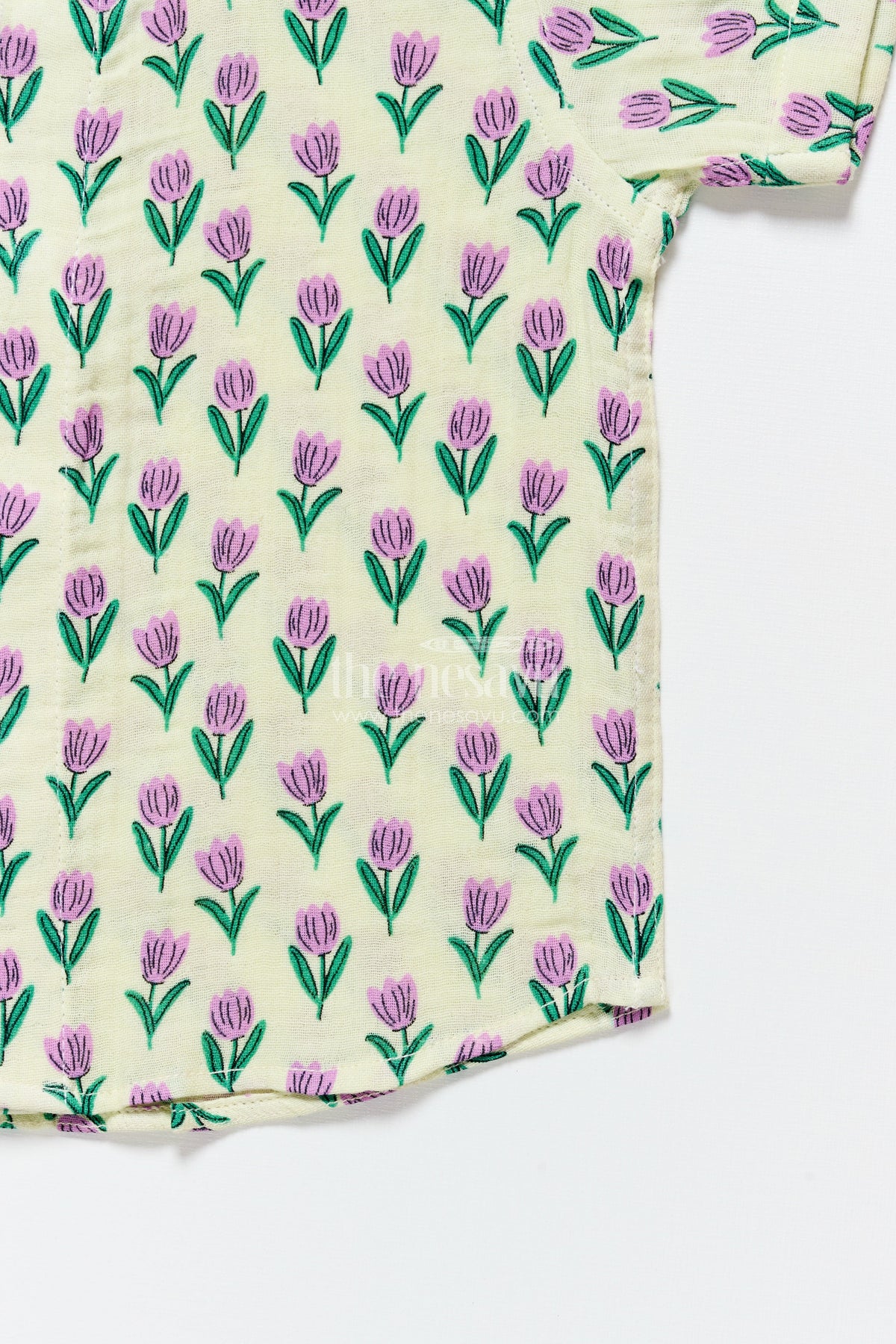 Boys Floral Muslin Shirt for Ethnic Day and Casual Wear