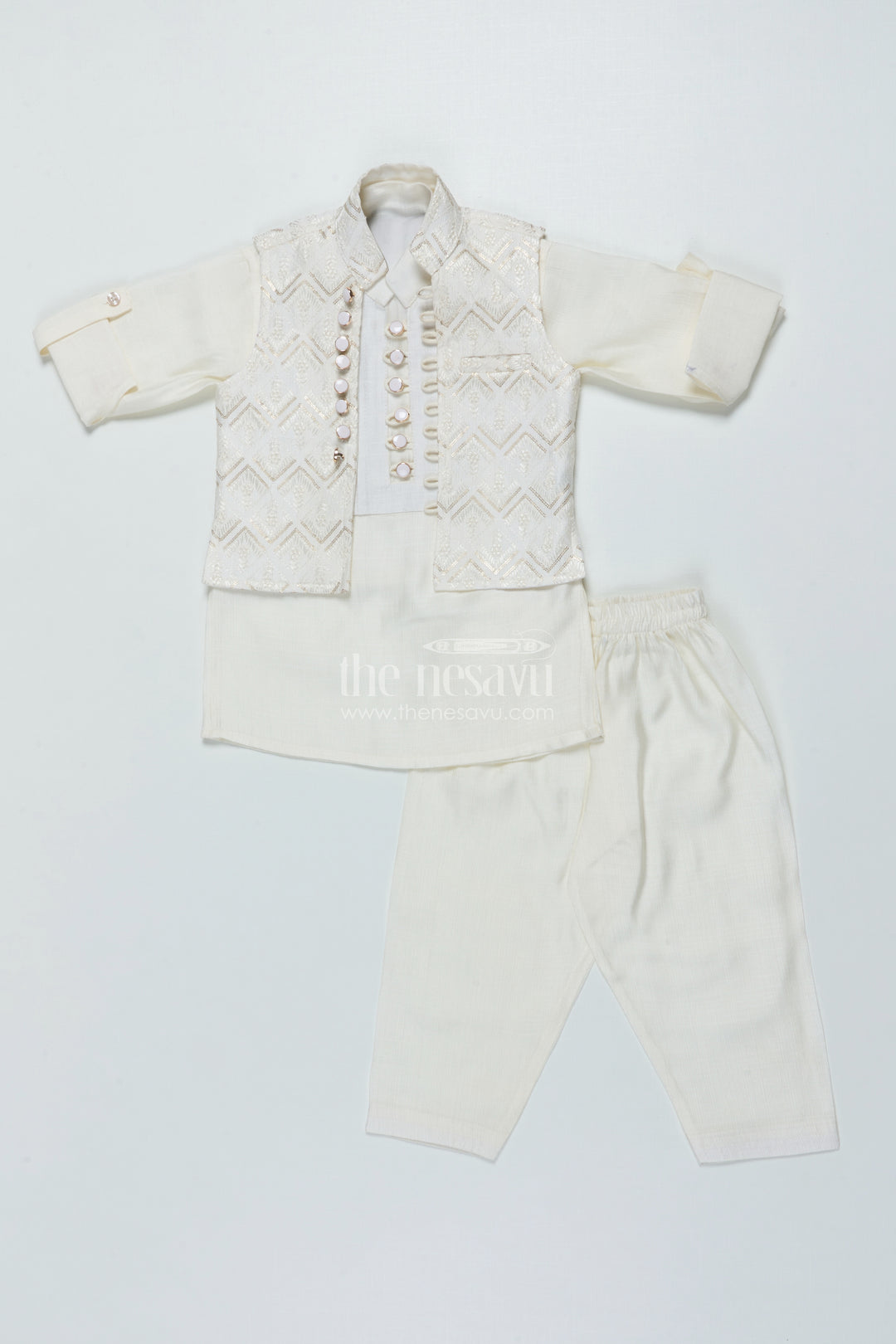 Whether it’s his first Diwali, naming ceremony, or your cousin’s wedding, your little boy deserves a traditional outfit that looks festive - but feels like playwear. At The Nesavu, our boys ethnic collection blends age-old styles with kid-friendly tailoring.
