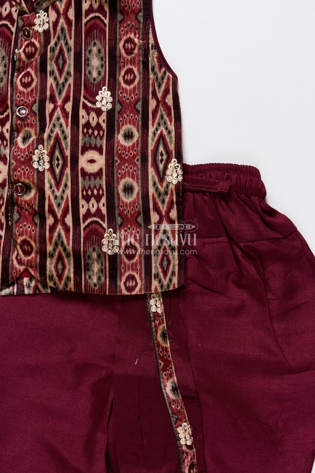- This boys dhoti set combines tradition with a rich, festive appeal