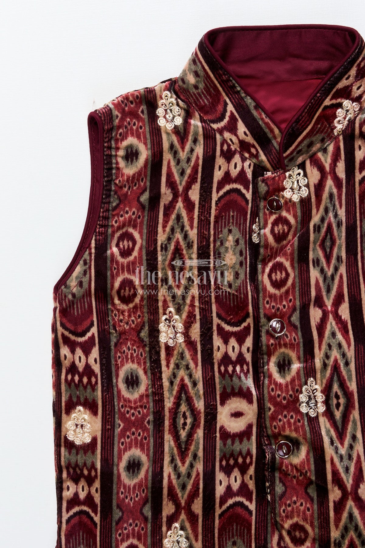 Boys Dhoti Set with Embroidered Velvet Kurta for Festive and Family Occasions