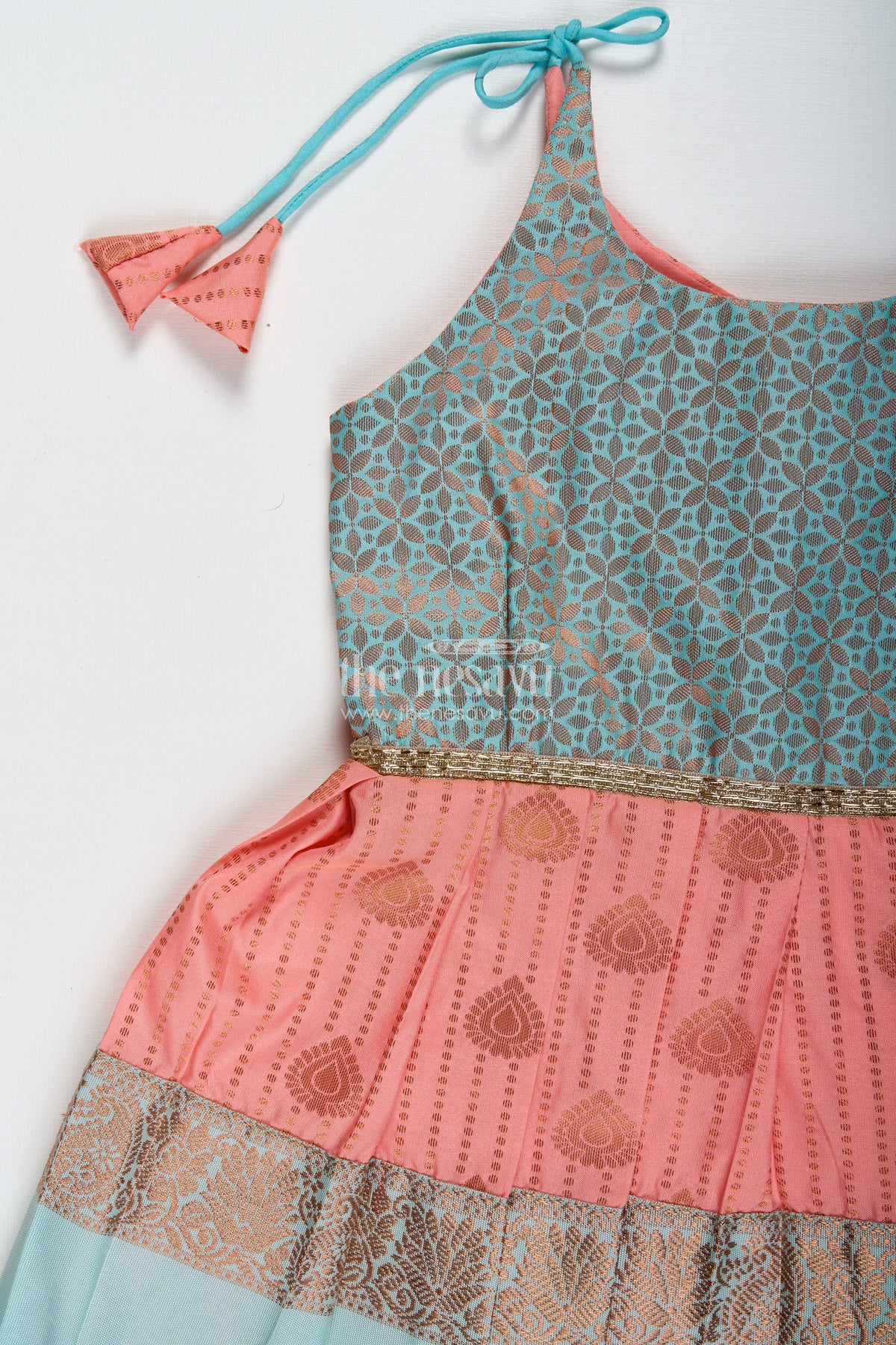 Peach and Teal Frock for Baby Girls Ethnic Dress for Birthdays