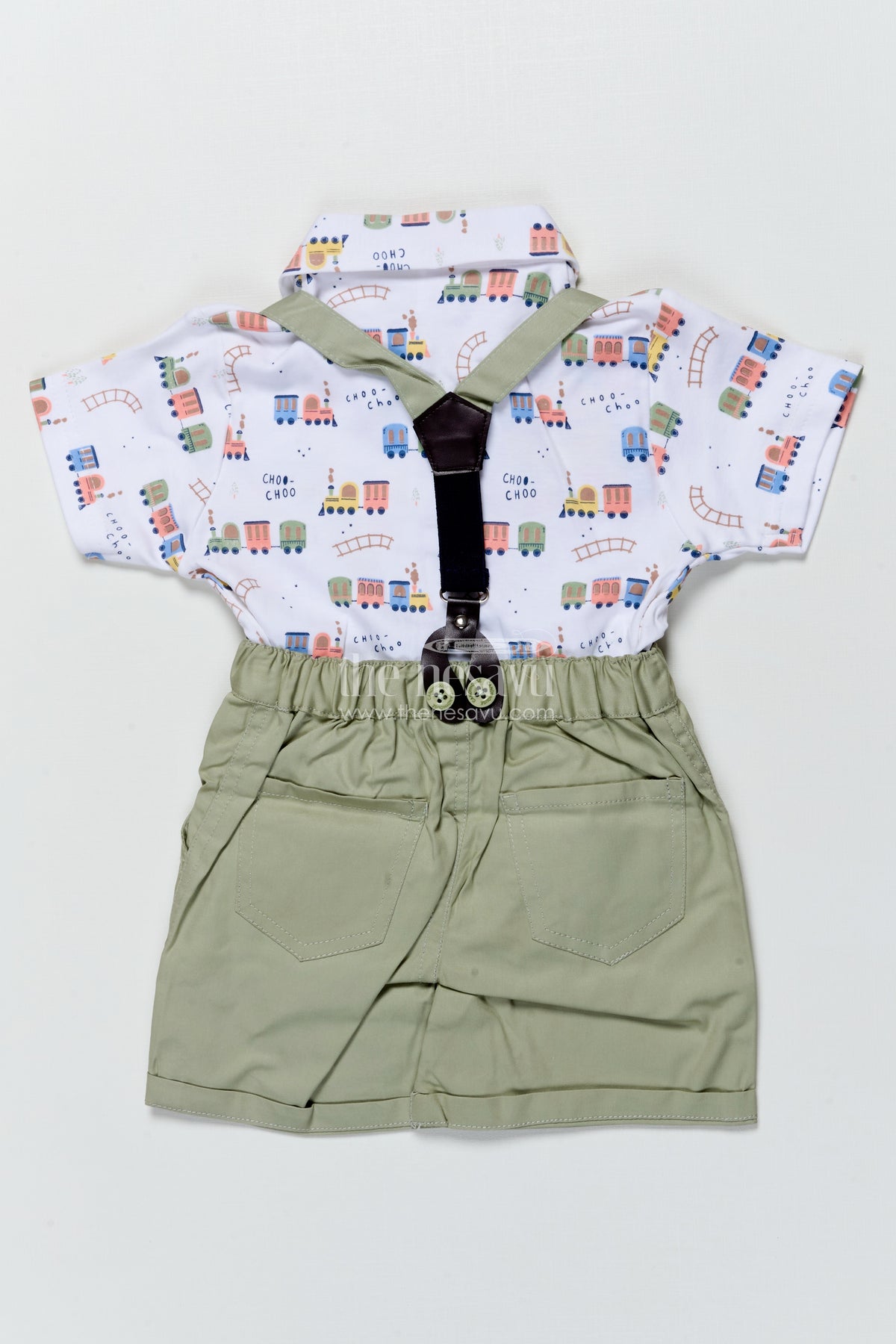 • This boys casual outfit set includes a playful digital print shirt and coordinating shorts