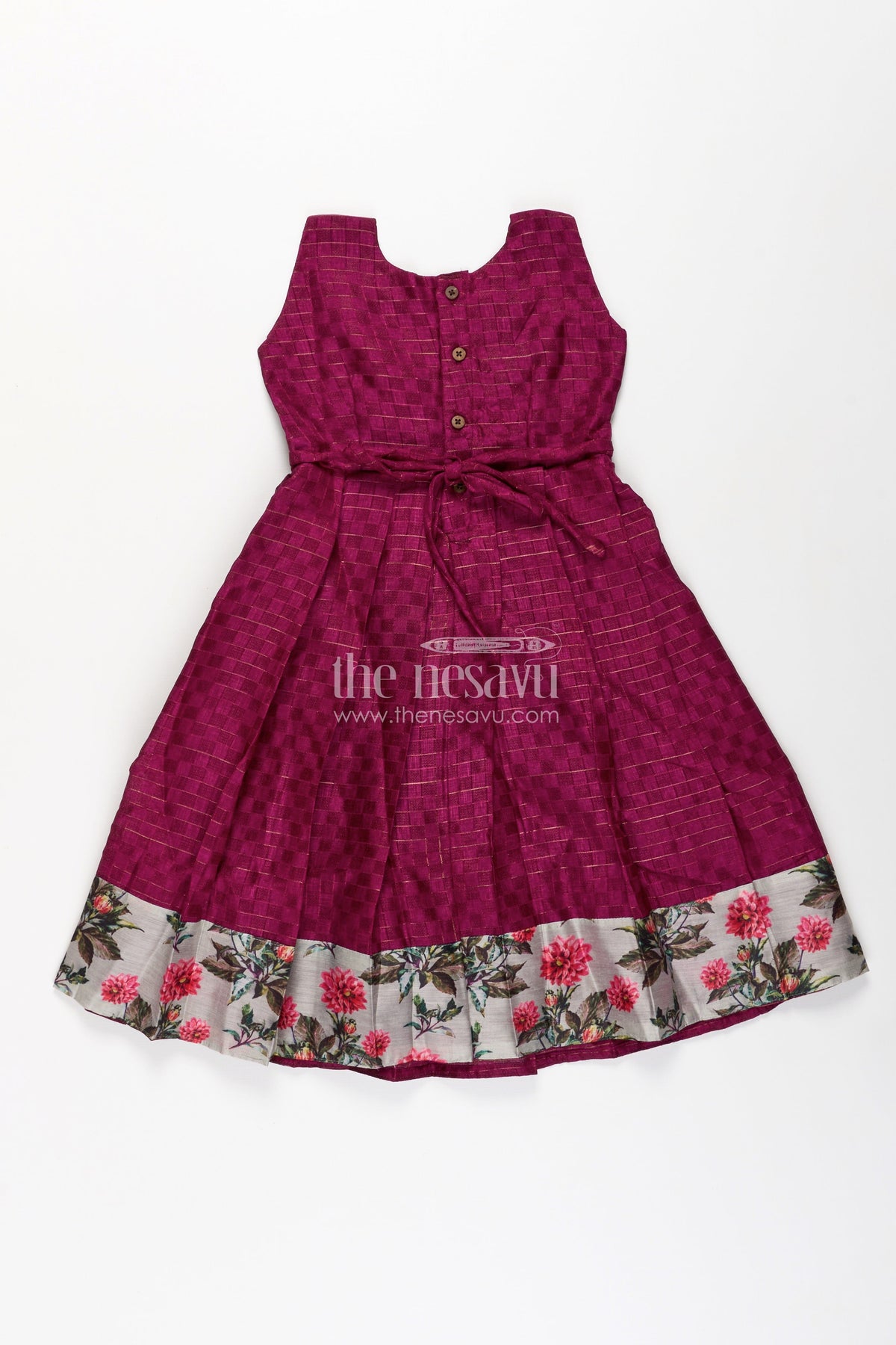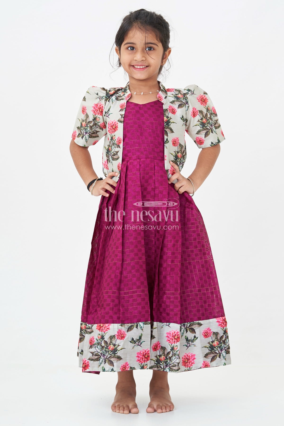 This pink colour gown dress redefines casual elegance with a traditional twist. The rich pink silk cotton gown features subtle checks and pleats that create a flowing silhouette, while the detachable chanderi cotton overcoat in a contrasting mint green floral print adds a touch of grace. The overcoat has short puffed sleeves, enhancing the formal look while keeping it light and breathable. With its soft textures and comfortable fit, this gown is perfect for weddings, receptions, or special cultural gatherings. The floral detailing at the hem complements the overcoat, making this piece a stylish and complete outfit.