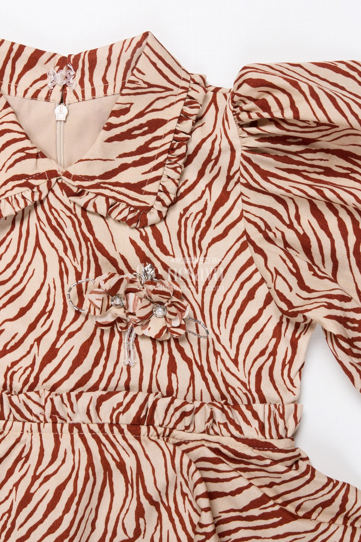 The Nesavu Girls Co-Ord Sets Girls Stylish Co-Ord Set with Flared Top for Birthdays and Cultural Functions Nesavu 22 (4Y) / Brown GPS908B-22 Nesavu girls digital print co-ord set peplum top pants birthdays stylish events