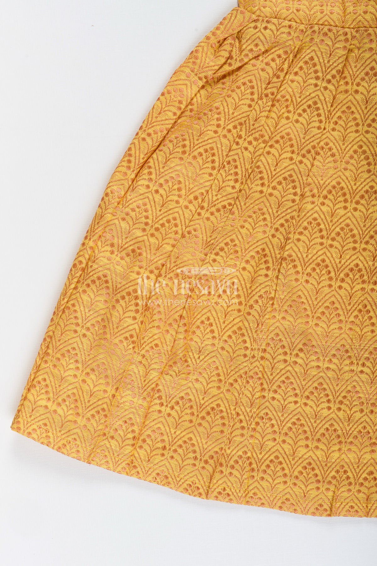 The Nesavu Silk Frock Semi Banarasi Frock for Toddler Girls for School Ethnic Day and Functions Nesavu 18 (2Y) / Yellow SF1058A-18 Nesavu semi banarasi silk frock toddler girls  perfect school ethnic day pujas