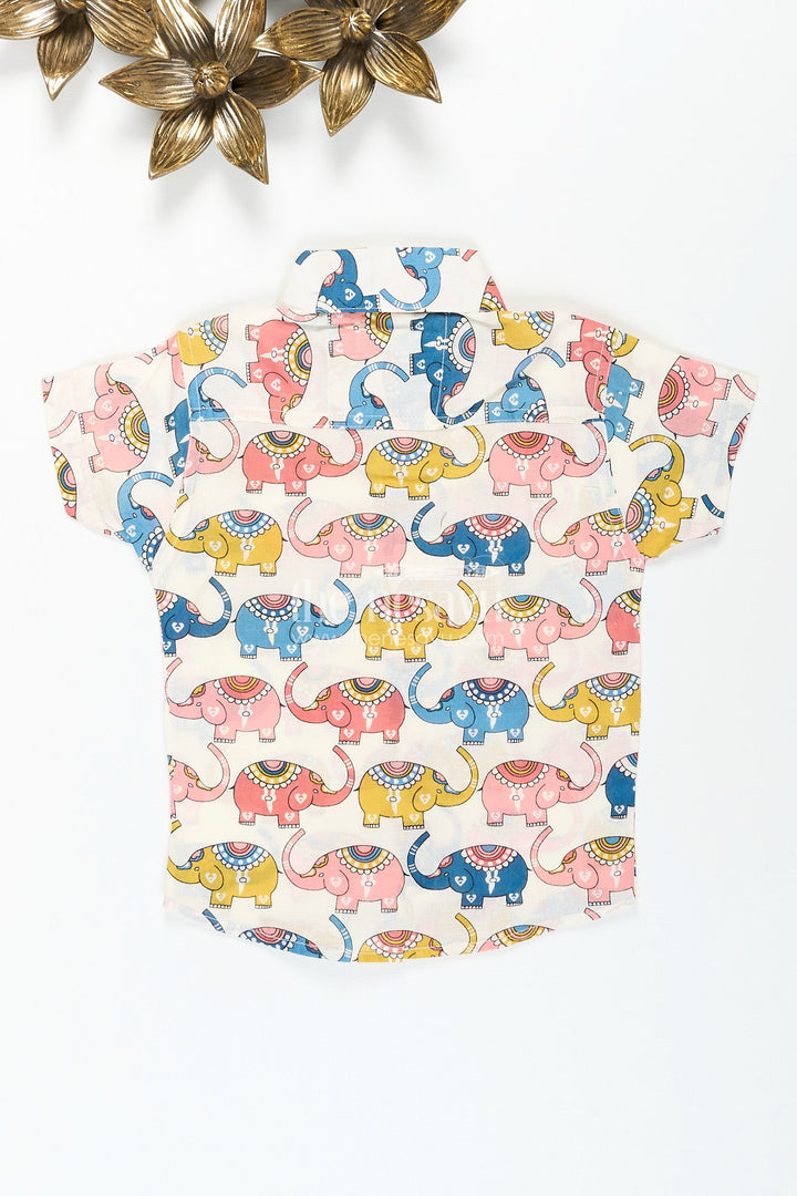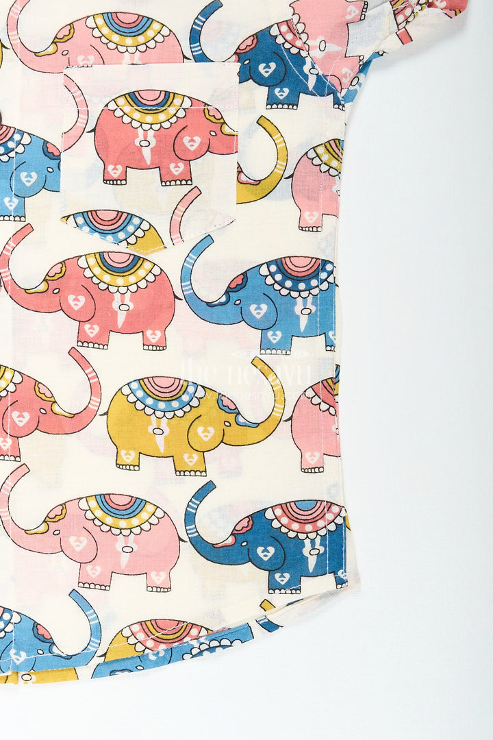 Boys Cotton Elephant Print Shirt for Everyday Wear and Festive Fun