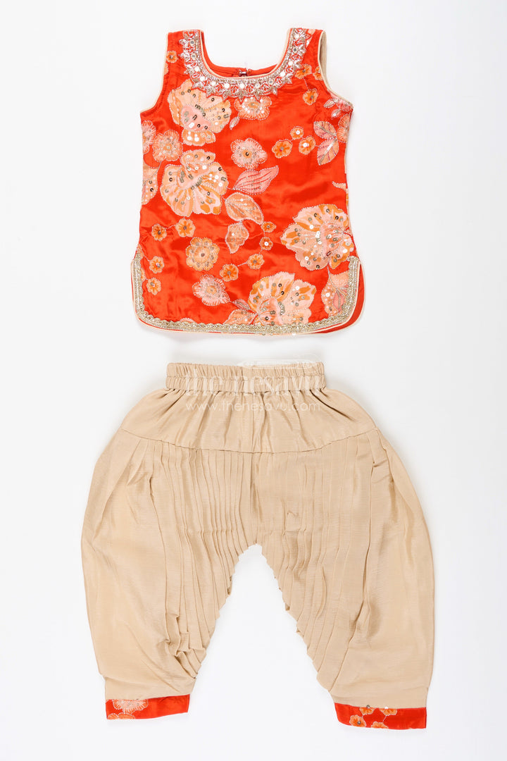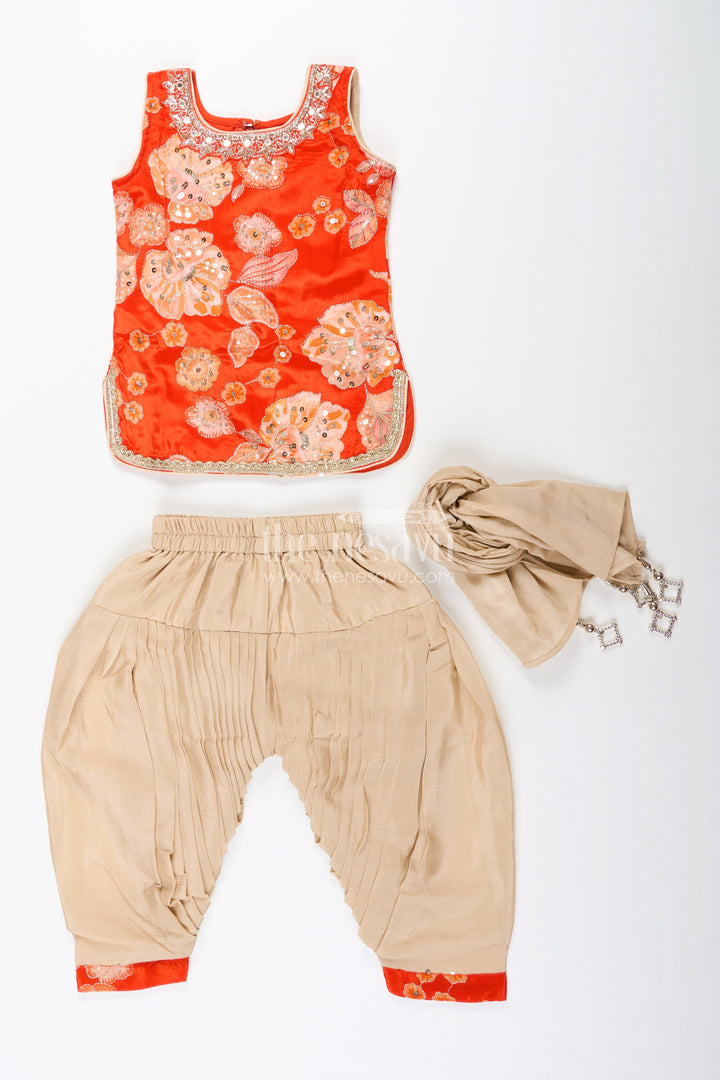The Nesavu Girls Sharara / Plazo Set Ethnic Dhoti Set with Floral Embroidered Kurta Traditional Wear for Girls Nesavu 18 (2Y) / Orange GPS683B-18 Traditional dhoti kurta set girls  embroidered ethnic wear ceremonies