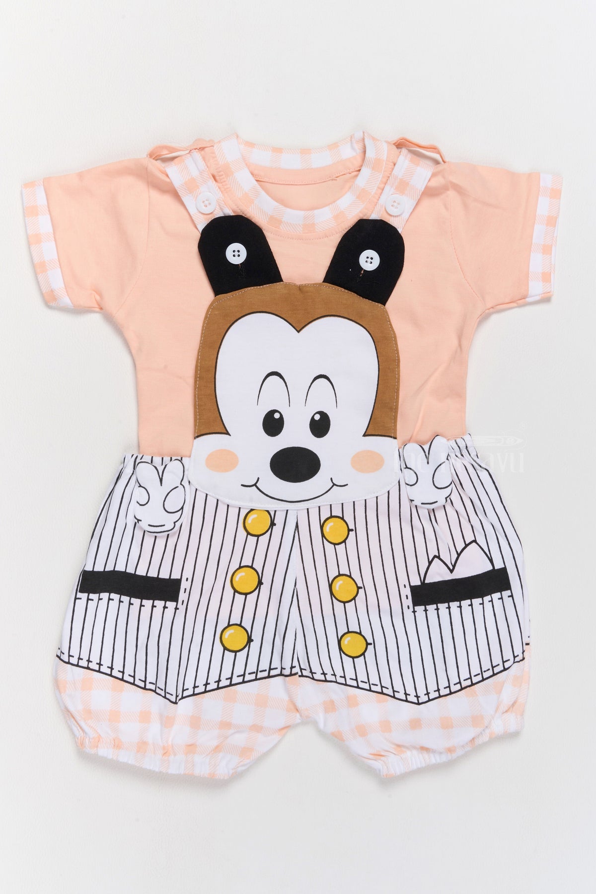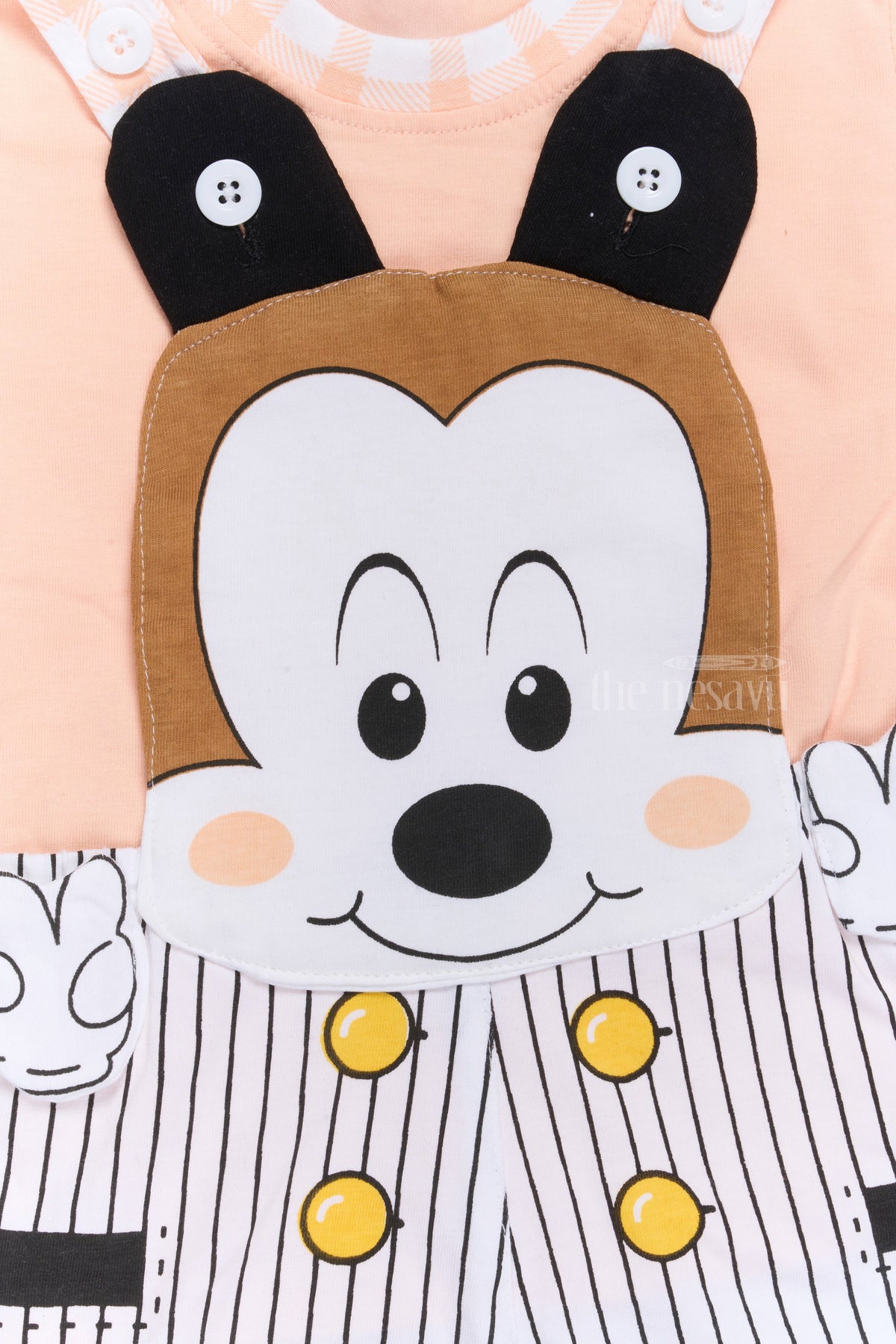 The Nesavu Baby Casual Sets Unisex Baby Clothes Pink Cotton Romper with Striped Suspenders and Cartoon Design Nesavu Unisex Baby Clothes Pink Cotton Romper Cartoon Design Suspenders | The Nesavu