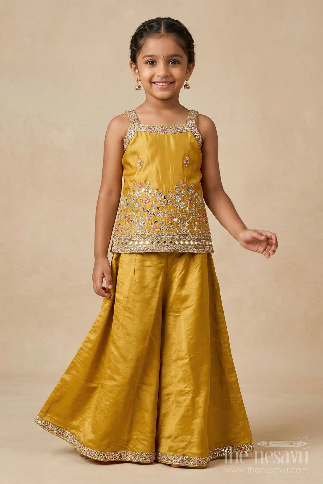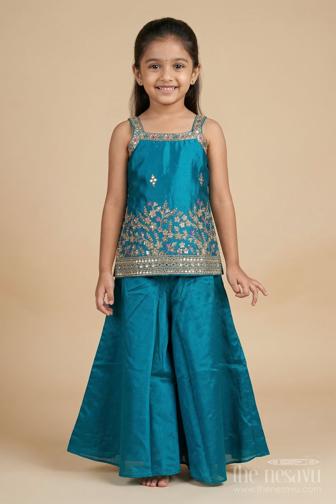Girls Plazo Set with Mirror Embroidery for Weddings and Cultural Functions