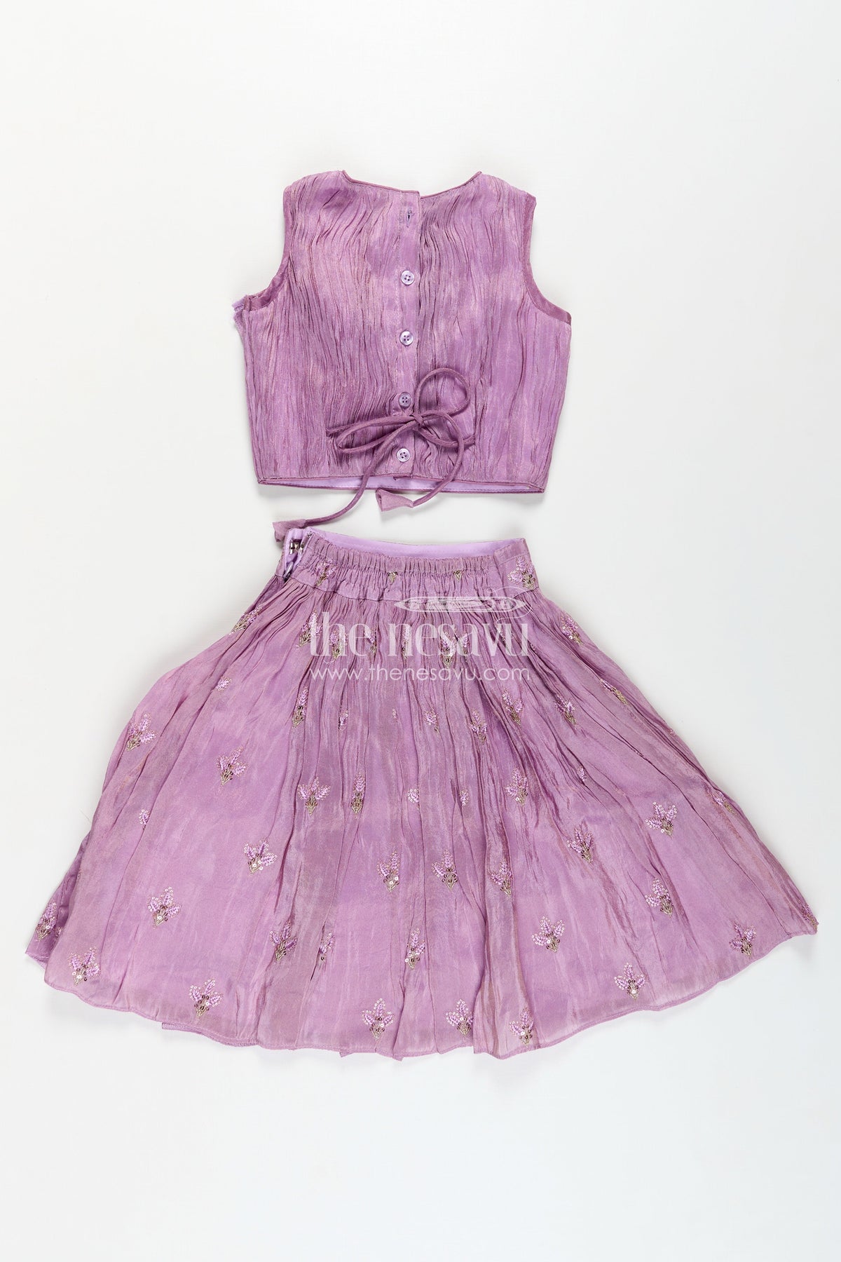 The Nesavu Girls Lehenga Choli Girls Light Purple Lehenga in Viscose Tissue with Thread Embroidery and Pleated Flared Skirt Nesavu Girls Light Purple Lehenga Set Thread Embroidered Flared Skirt Viscose Tissue Fabric | The Nesavu