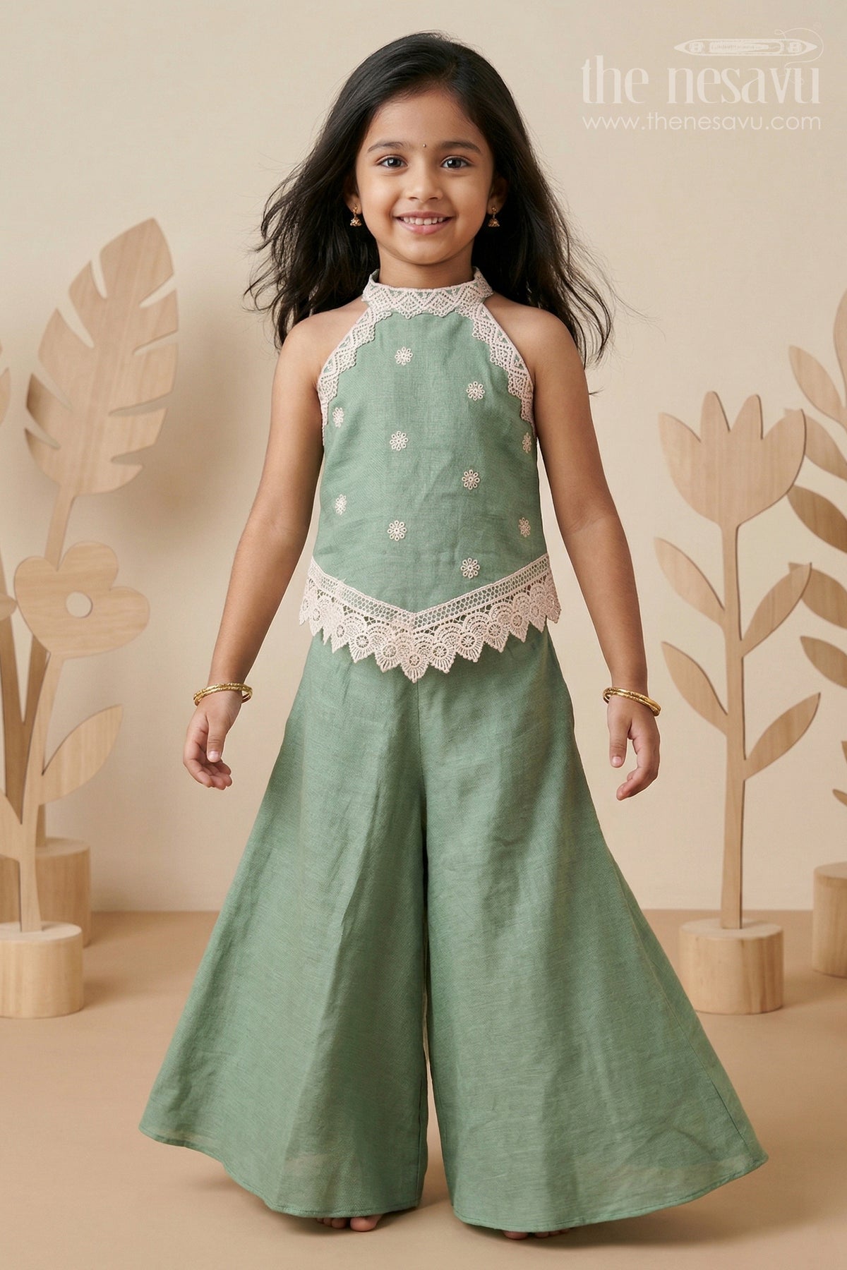The Nesavu Girls Sharara / Plazo Set Girls Sharara Set for Festive Outings and Traditional Functions Nesavu 18 (2Y) / Green / Viscose GPS1003C-18 Nesavu girls viscose rayon sharara set for festive outings and traditional celebrations