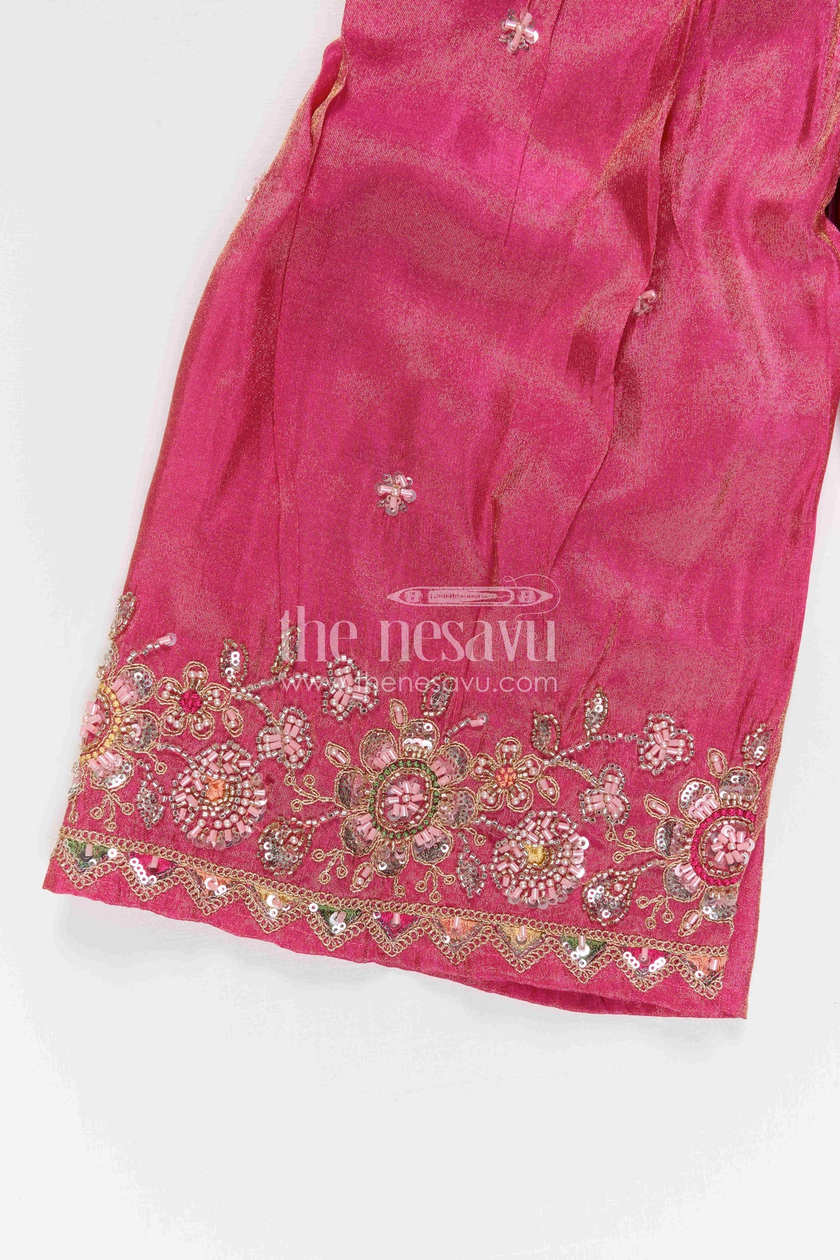 The Nesavu Girls Sharara / Plazo Set Girls Sharara Outfit for Weddings and Festive Celebrations Nesavu 18 (2Y) / Pink / Viscose Silk GPS1030A-18 Nesavu Girls Sharara Outfit For Weddings With Viscose Silk And Designer Embroidery Festive Set