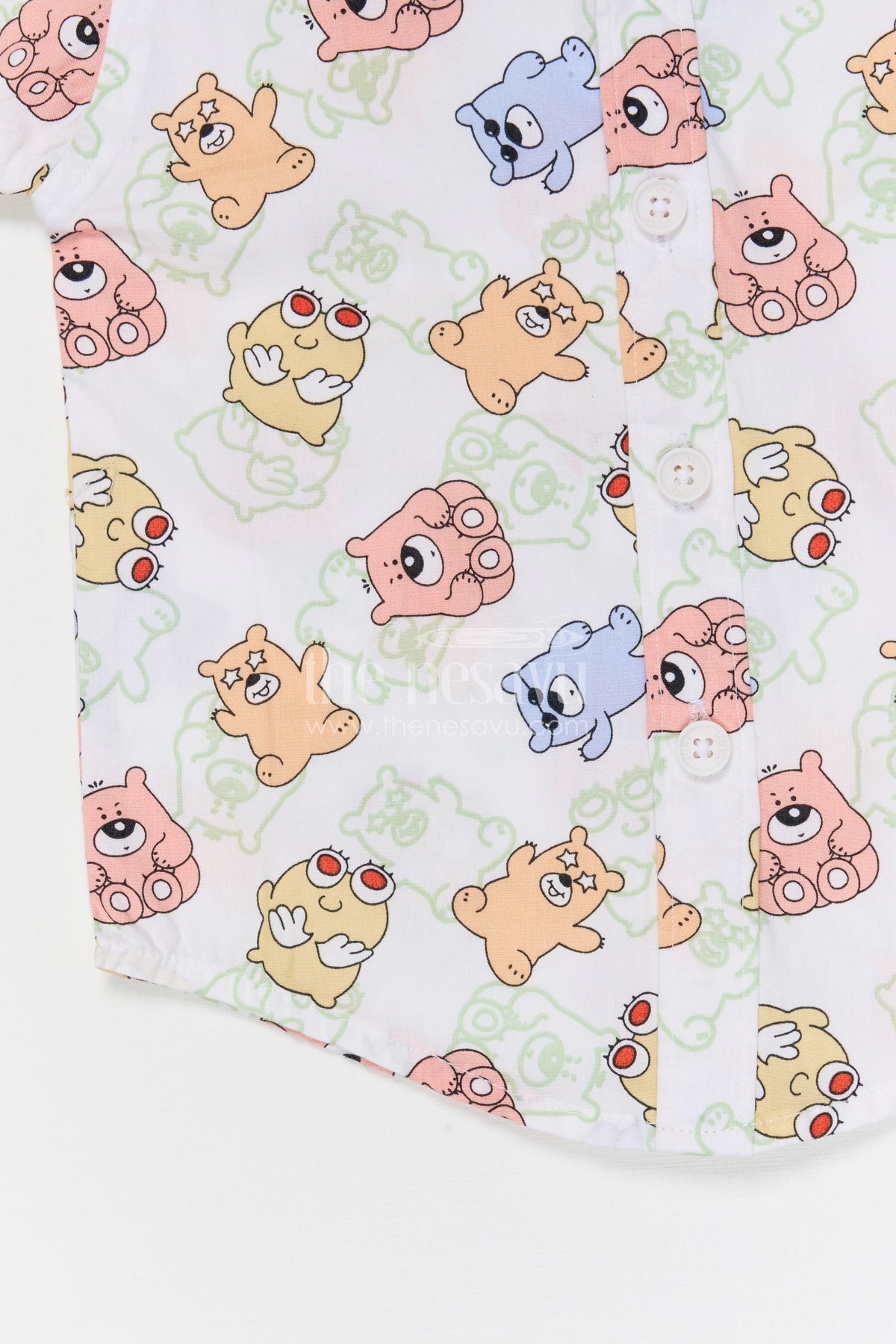 - Design: Cartoon digital print with button front shirt style