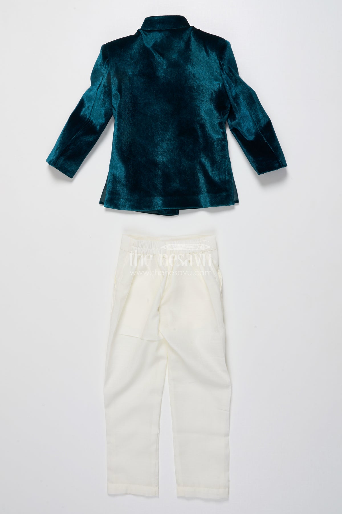 Boys Velvet Sherwani Set with Stone Work for Weddings and Receptions