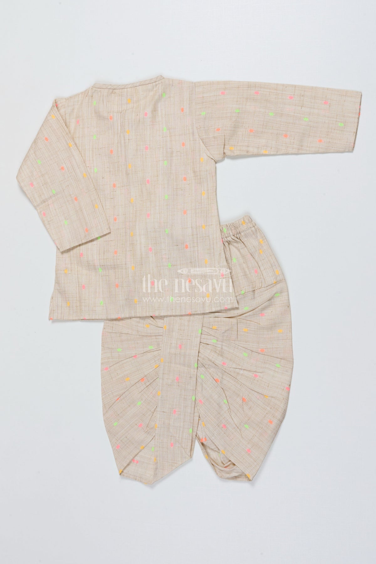 - This boys kurta set is crafted from breathable cotton with subtle digital print work