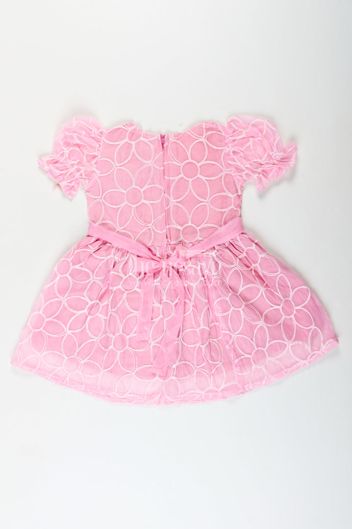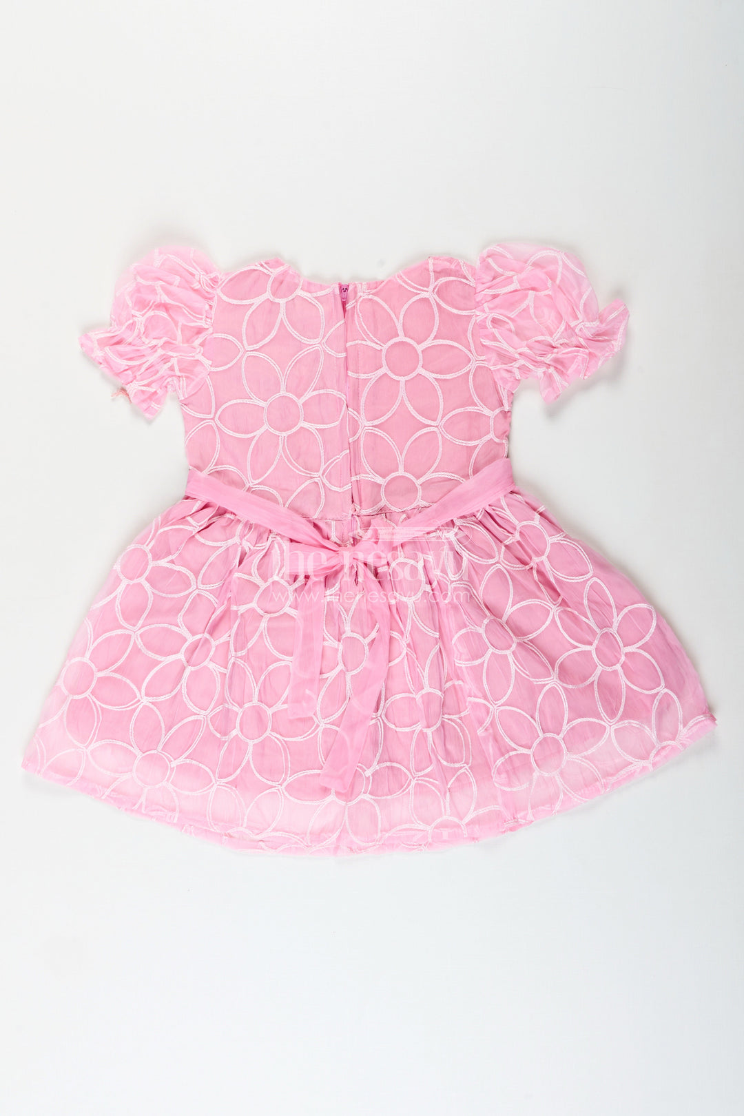 - This girls pink embroidered organza frock is perfect for birthdays, school functions, and festive celebrations