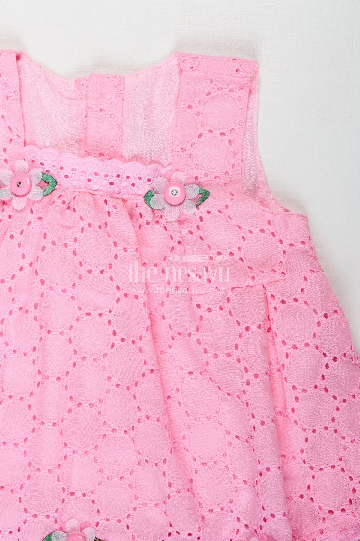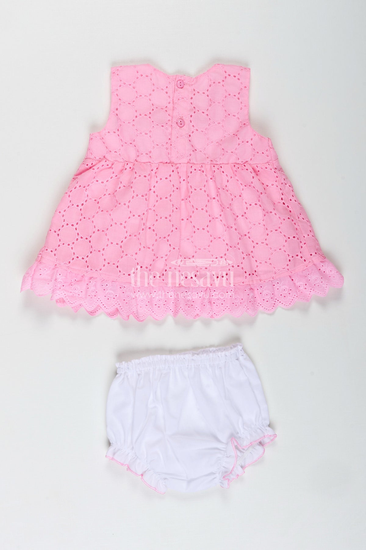 The Nesavu Baby Cotton Frocks Party Cotton Dress for Girls Hakoba Bloomer Set Nesavu Nesavu Pink Cotton Embroidered Party Frock Girls Floral Trim Matching Bloomer