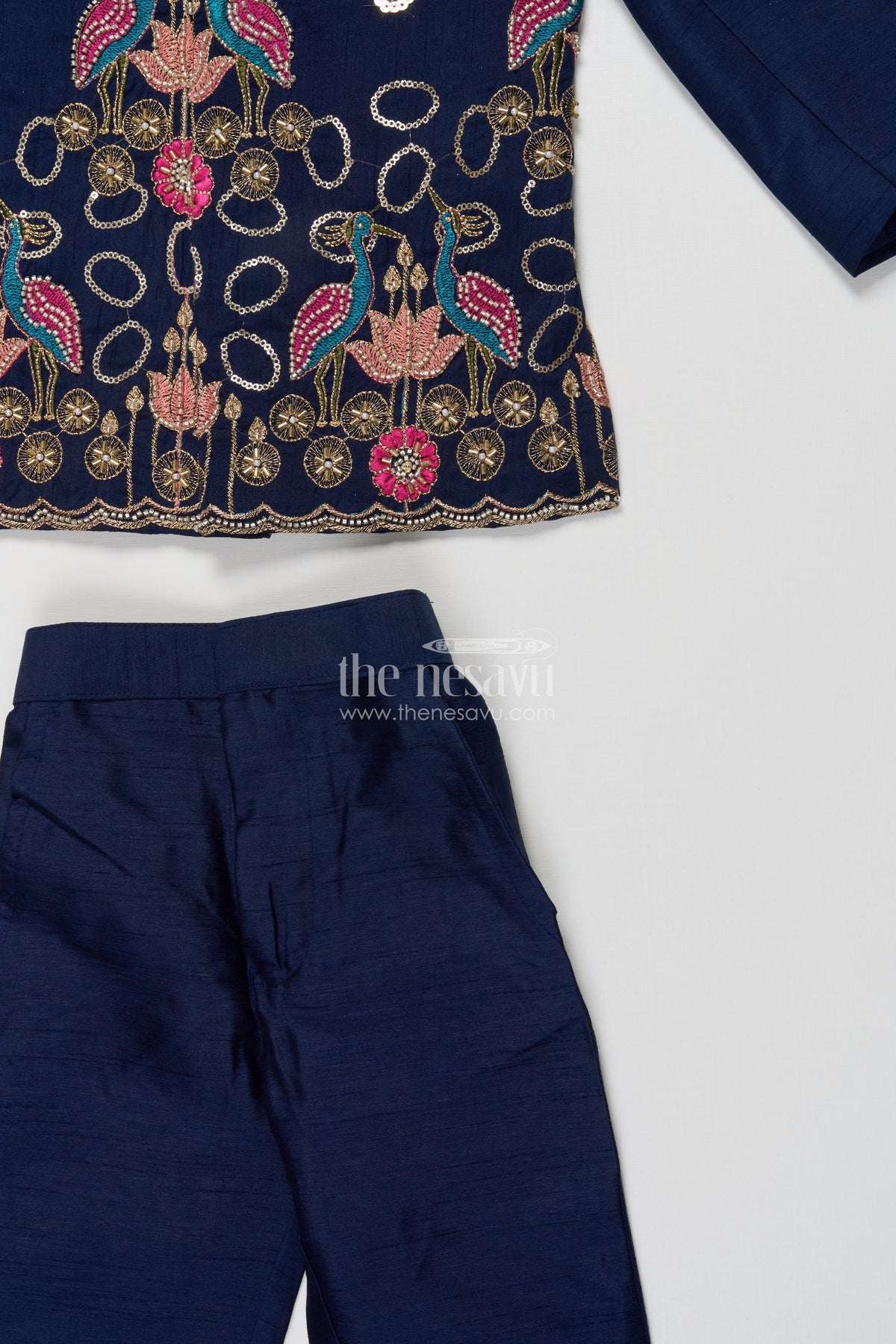 - Design: Designer embroidery, Peacock motifs, Jacket with pants