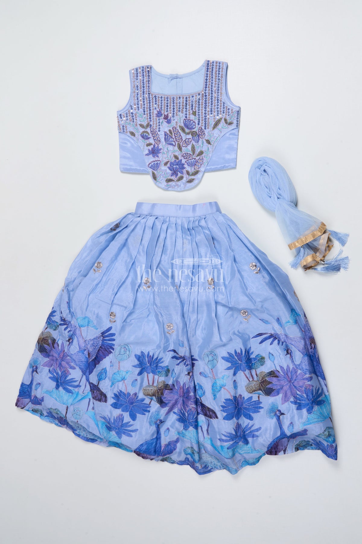 The Nesavu Girls Lehenga Choli Girls Georgette Lehenga Choli with Thread Embroidery for Festive Occasions Nesavu 24 (5Y) / Blue GL725B-24 Nesavu girls lehenga choli georgette thread embroidery festive functions weddings