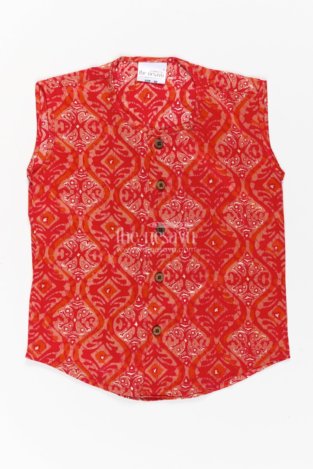 The Nesavu Baby Jablas Baby Boys Pink Sleeveless Jabla Top in Soft Rayon Fabric for Everyday Jhabla Dress Style Nesavu 10 (NB) / Red IF025C-10 Jhabla dress Baby Boys Pink Batik Rayon Fabric Wooden Buttons Mandarin Collar | The Nesavu