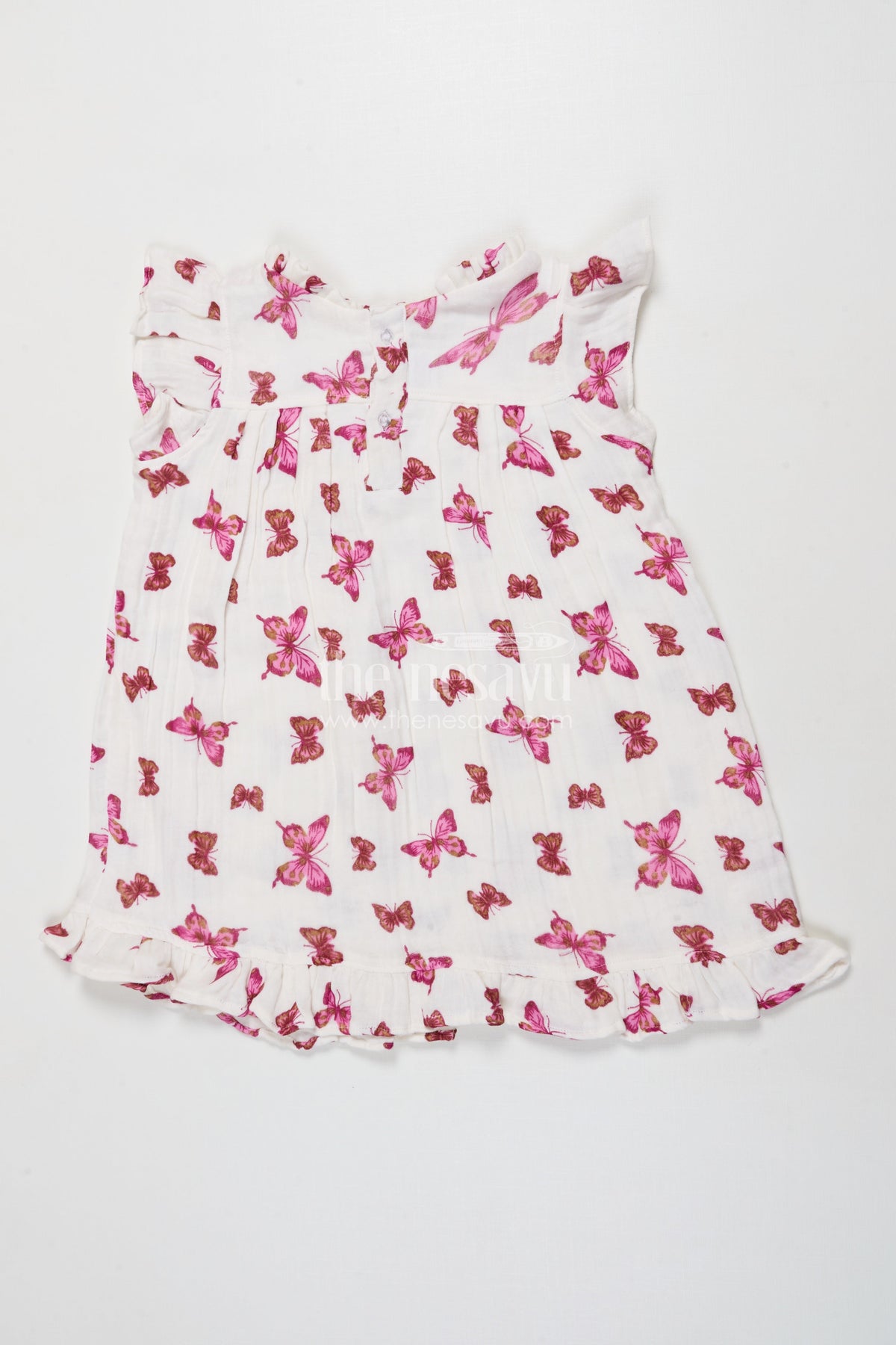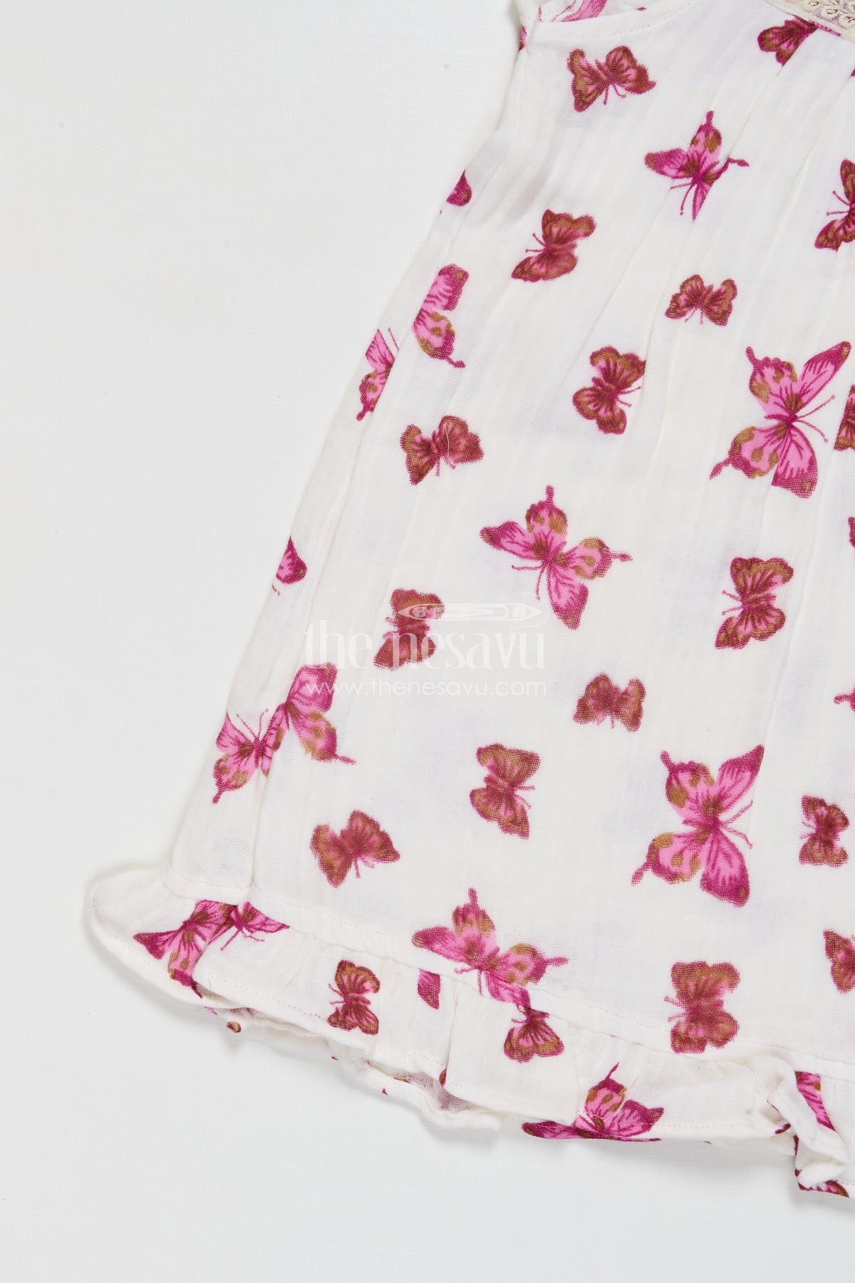 - This baby girl frock features breathable muslin cotton with a playful star digital print