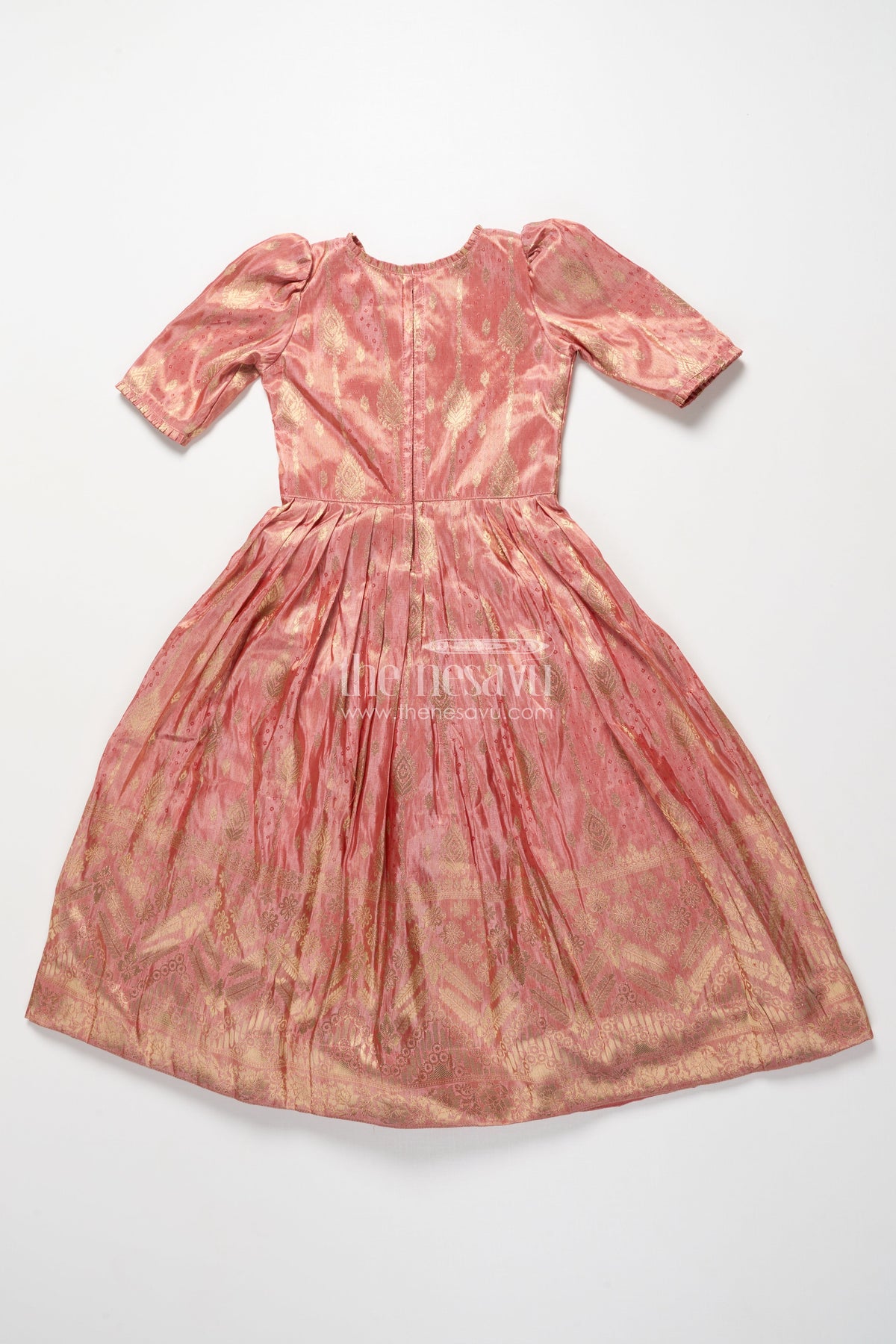 Girls Silk Gown with Zari Border for Weddings and Festive Occasions