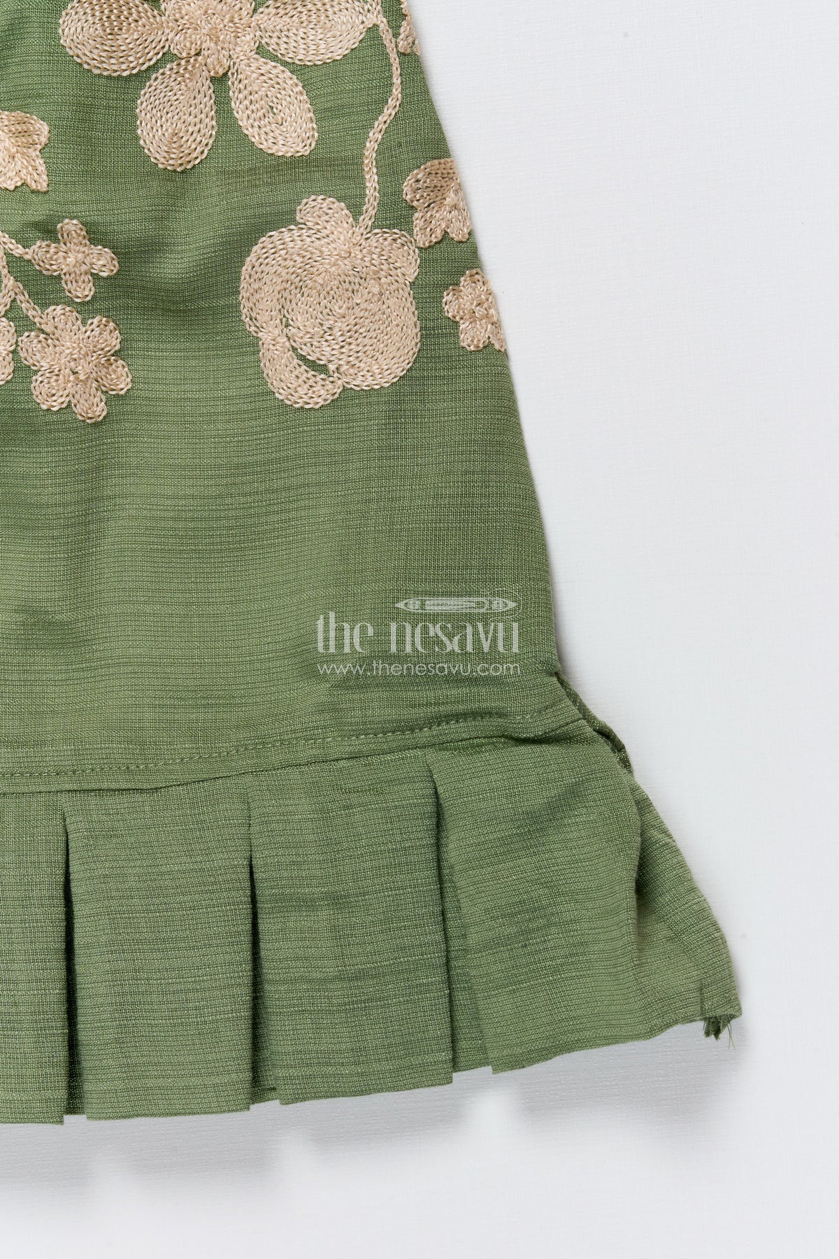 The Nesavu Girls Cotton Frock Girls Cotton Frock with Embroidery for Ethnic Celebrations Nesavu 16 (1Y) / Green GFC1866B-16 Nesavu girls embroidered cotton frock full sleeves festive ethnic wear