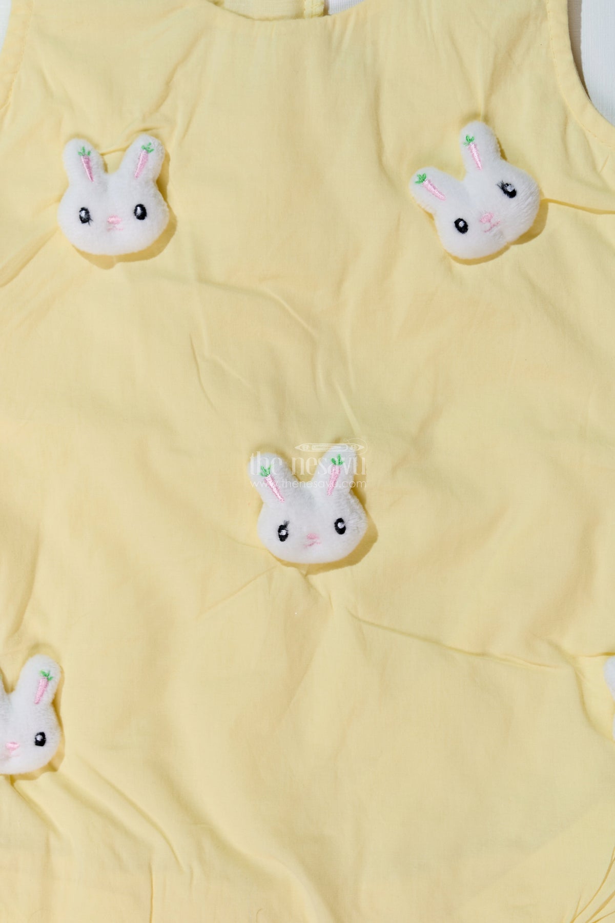 The Nesavu Baby Cotton Frocks Baby Girls Frock Design Party Wear with Adorable Bunny Patches and a Flared Cotton Skirt Nesavu 14 (6M) / Yellow BFJ741A-14 Baby Girls Frock Design Party Wear Cute Bunny Patches Flared Cotton Skirt | The Nesavu