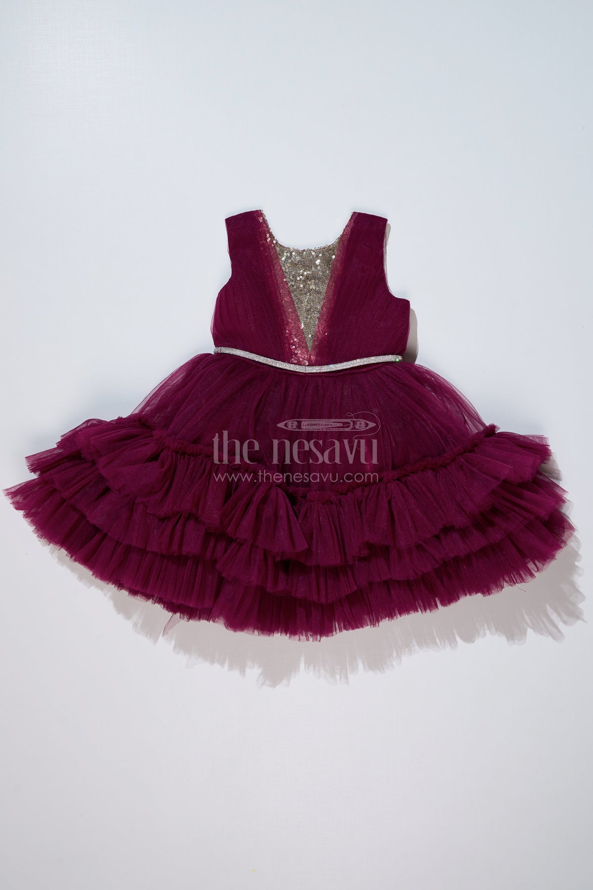 The Nesavu Girls Fancy Party Frock Girls Elegant Purple Cocktail Party Dress with Ruffled Layers and Sequin Embellishments Nesavu Girls Elegant Purple Cocktail Party Dress Ruffled Net Sequin Detailing | The Nesavu