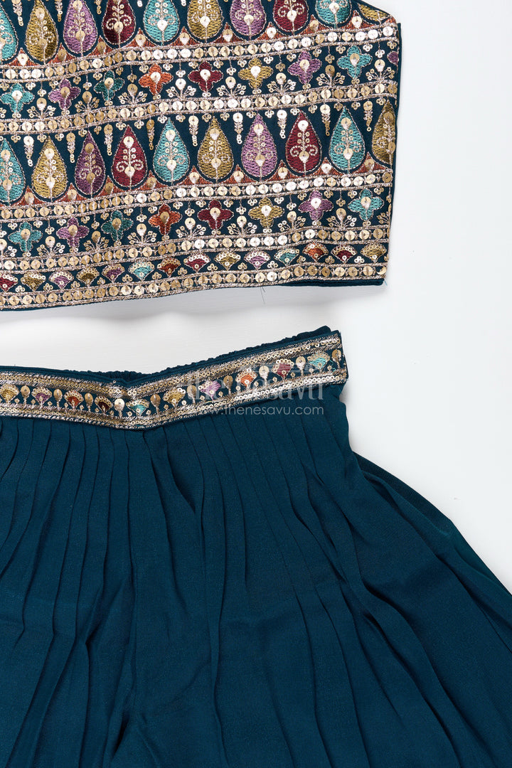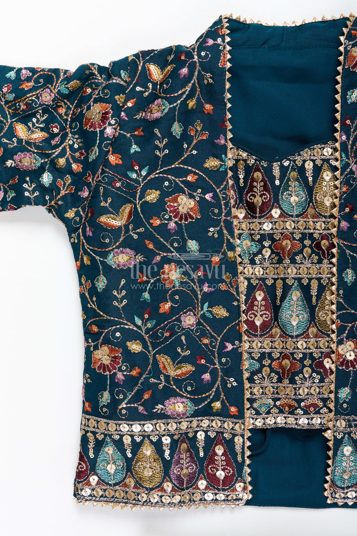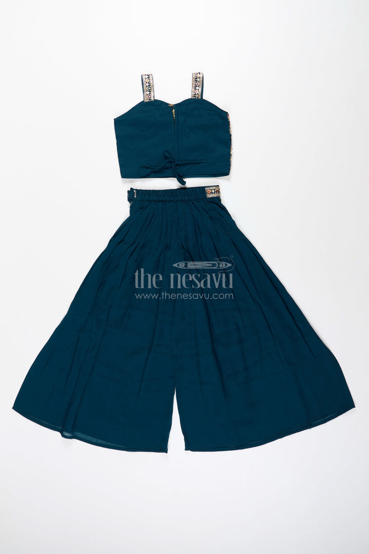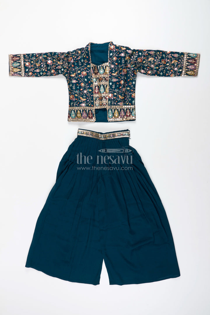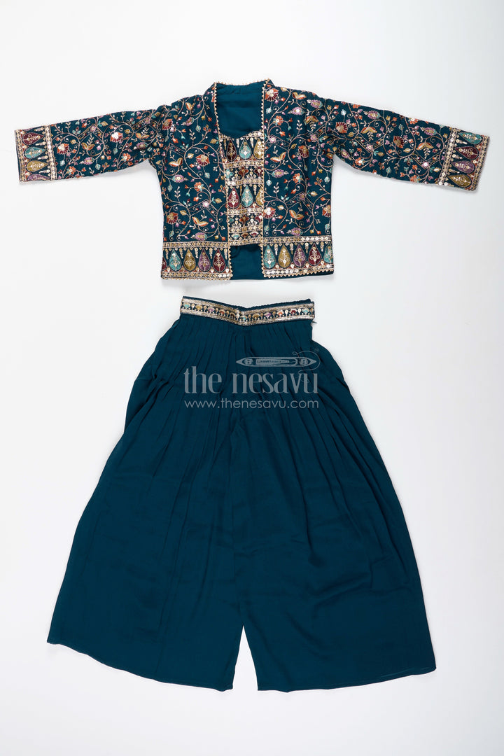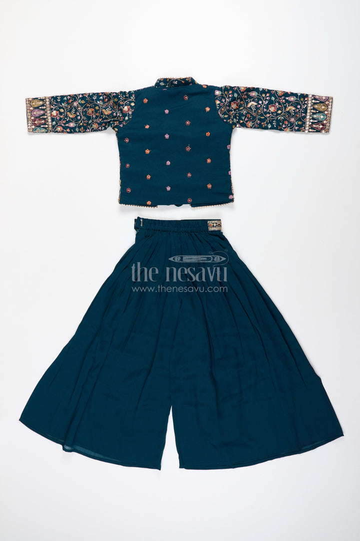 The Nesavu Girls Sharara / Plazo Set All-Over Embroidered Ethnic Co-Ord Set Traditional Charm for Girls Nesavu 26 (6Y) / Green GPS747A-26 Traditional embroidered co-ord set girls  festive plazo outfit Nesavu
