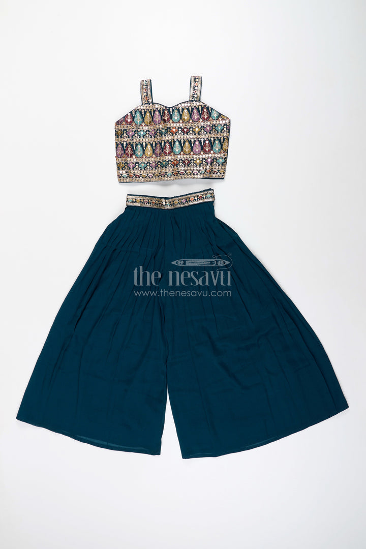 The Nesavu Girls Sharara / Plazo Set All-over embroidered ethnic co-ord set – traditional charm for girls Nesavu Traditional embroidered co-ord set girls  festive plazo outfit Nesavu
