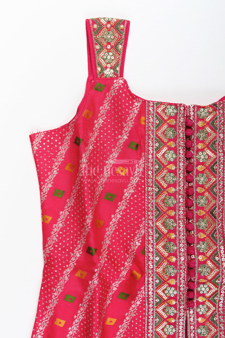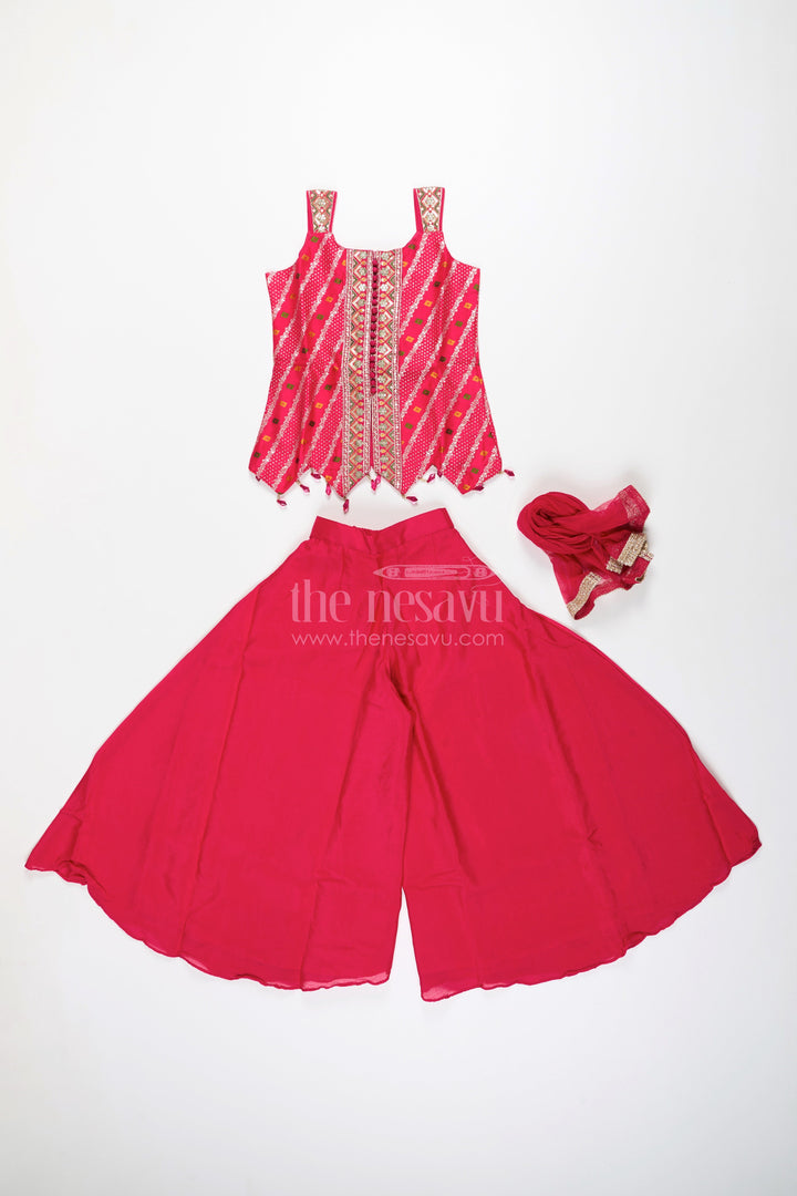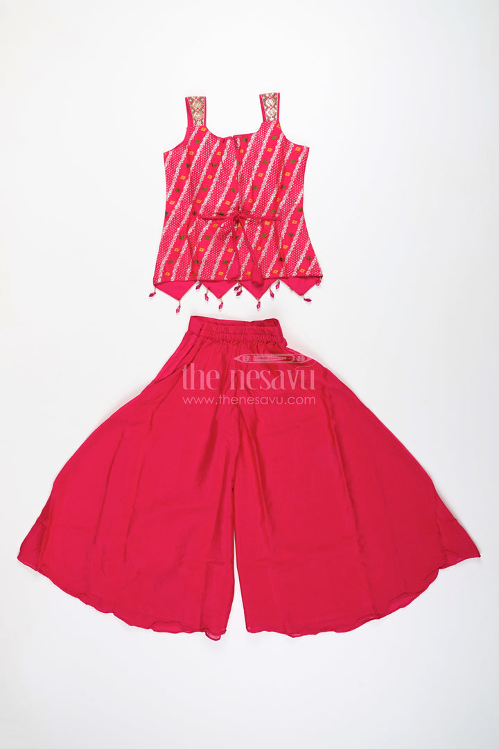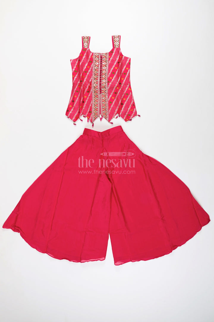 The Nesavu Girls Sharara / Plazo Set Sleeveless Flared Plazo Set with Mirror Embroidered Top Festive Ethnic Look for Girls Nesavu 26 (6Y) / Pink GPS749A-26 Mirror embroidered plazo set girls  festive ethnic wear Nesavu
