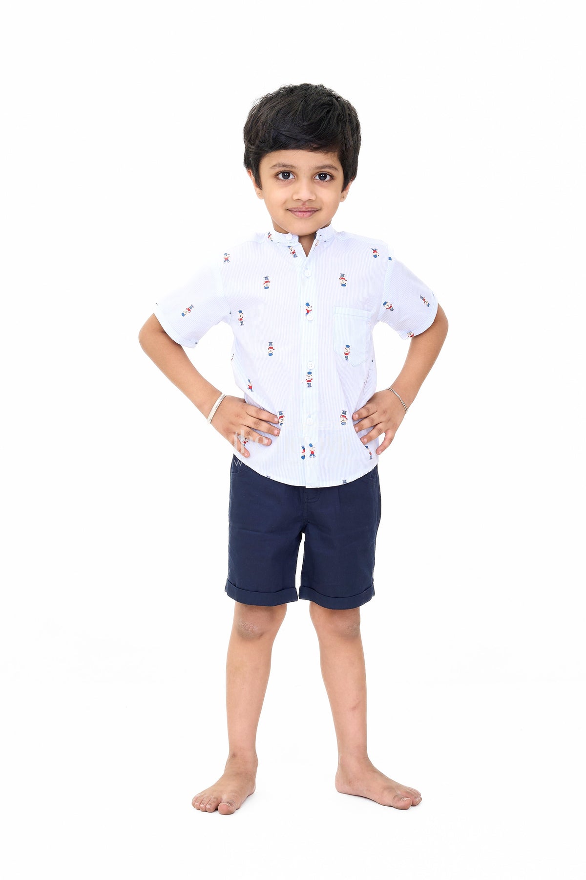 Boys Blue Printed Shirt and Black Shorts Set for Casual Outings