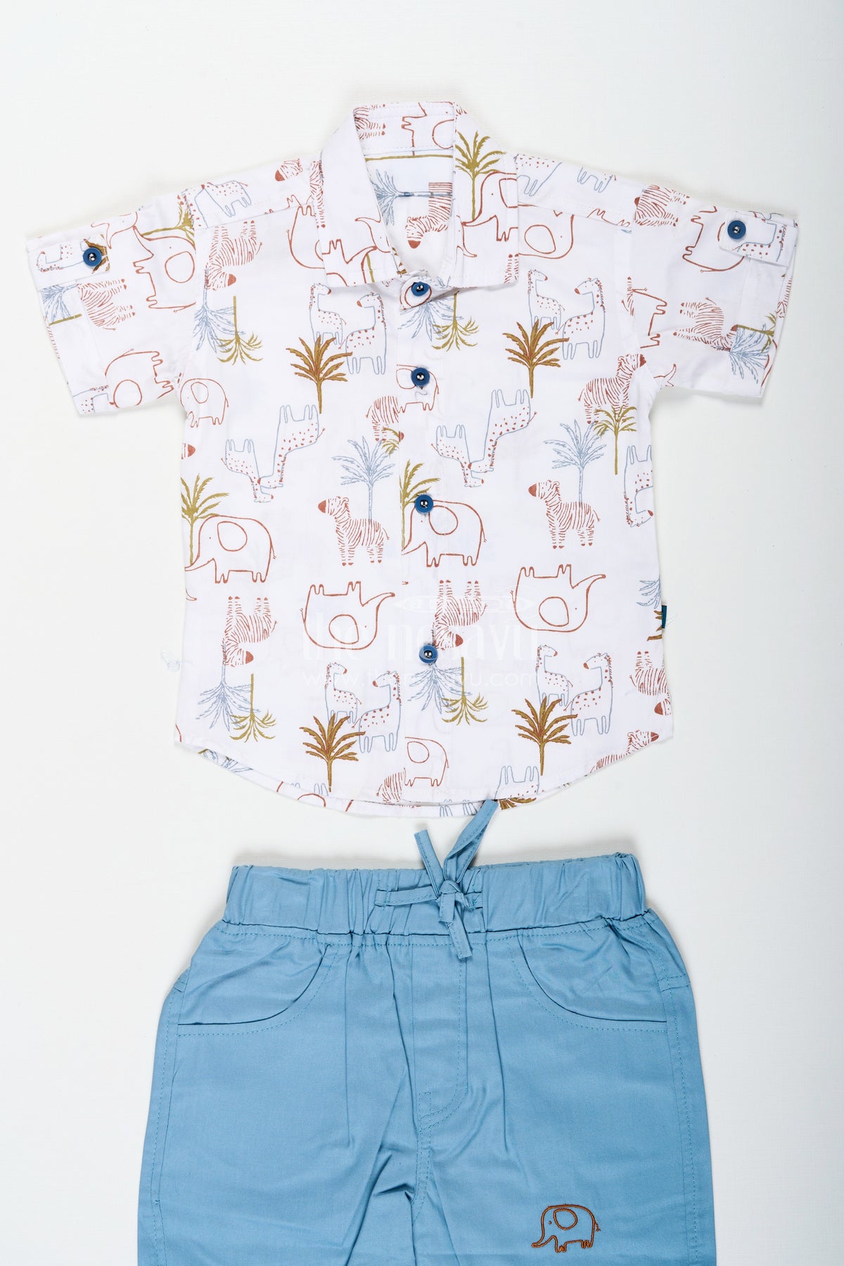 The Nesavu Boys Casual Set Boys Cotton Designer Casual Wear Set with Animal Digital Print Shirt and Blue Shorts Nesavu 14 (6M) / Blue BCS247B-14 Nesavu Boys Designer Casual Wear Cotton Set Animal Print Shirt Blue Shorts