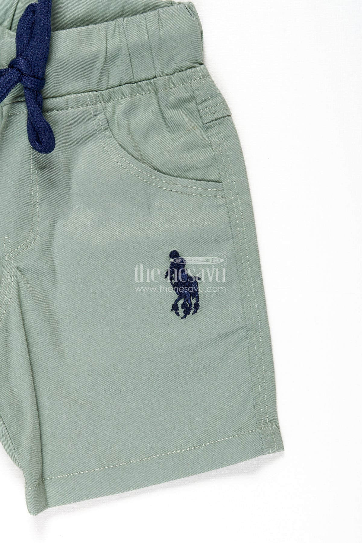 The Nesavu Boys Shorts Boys Khaki Cotton Shorts with Adjustable Drawstring and Functional Pockets Nesavu 18 (2Y) / Green BWS001K-18 Boys Khaki Cotton Shorts Adjustable Drawstring Embroidered Logo | The Nesavu