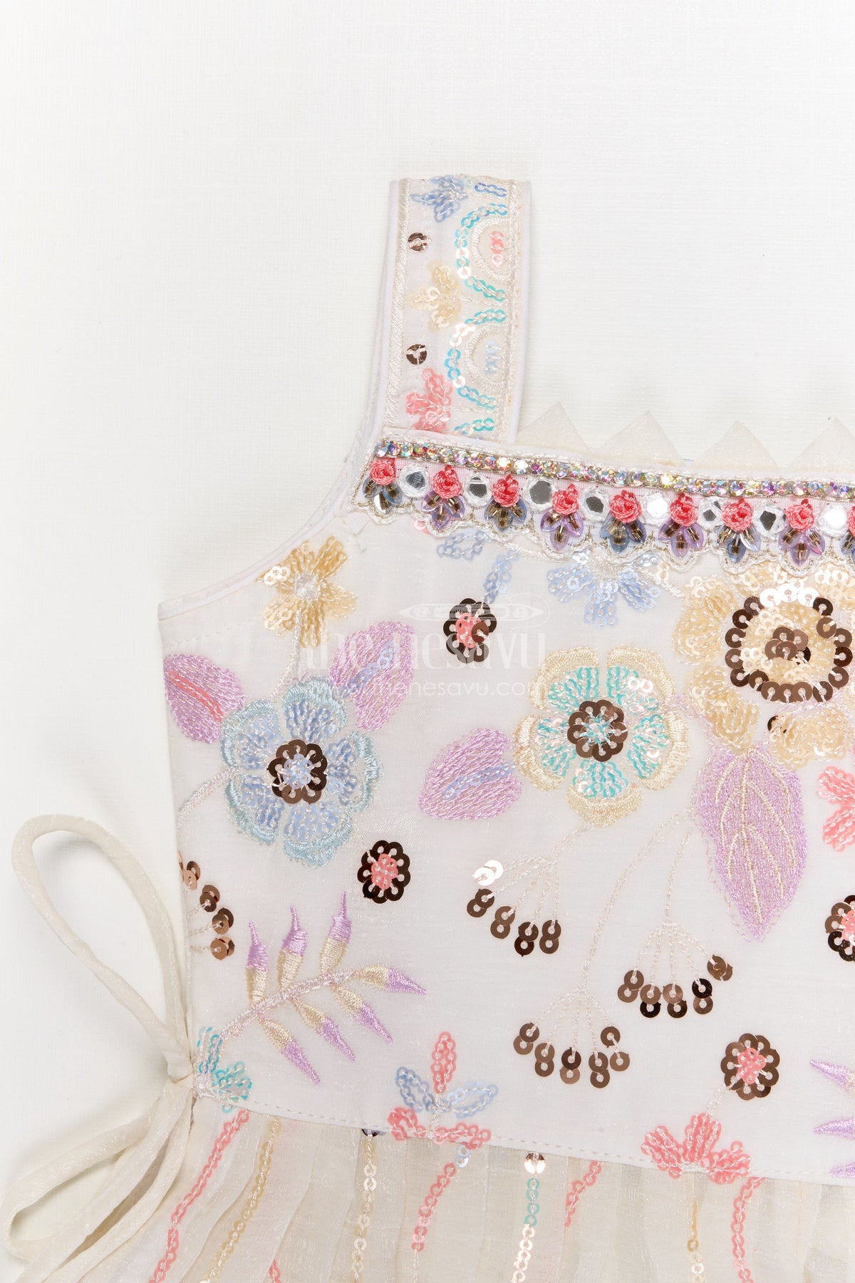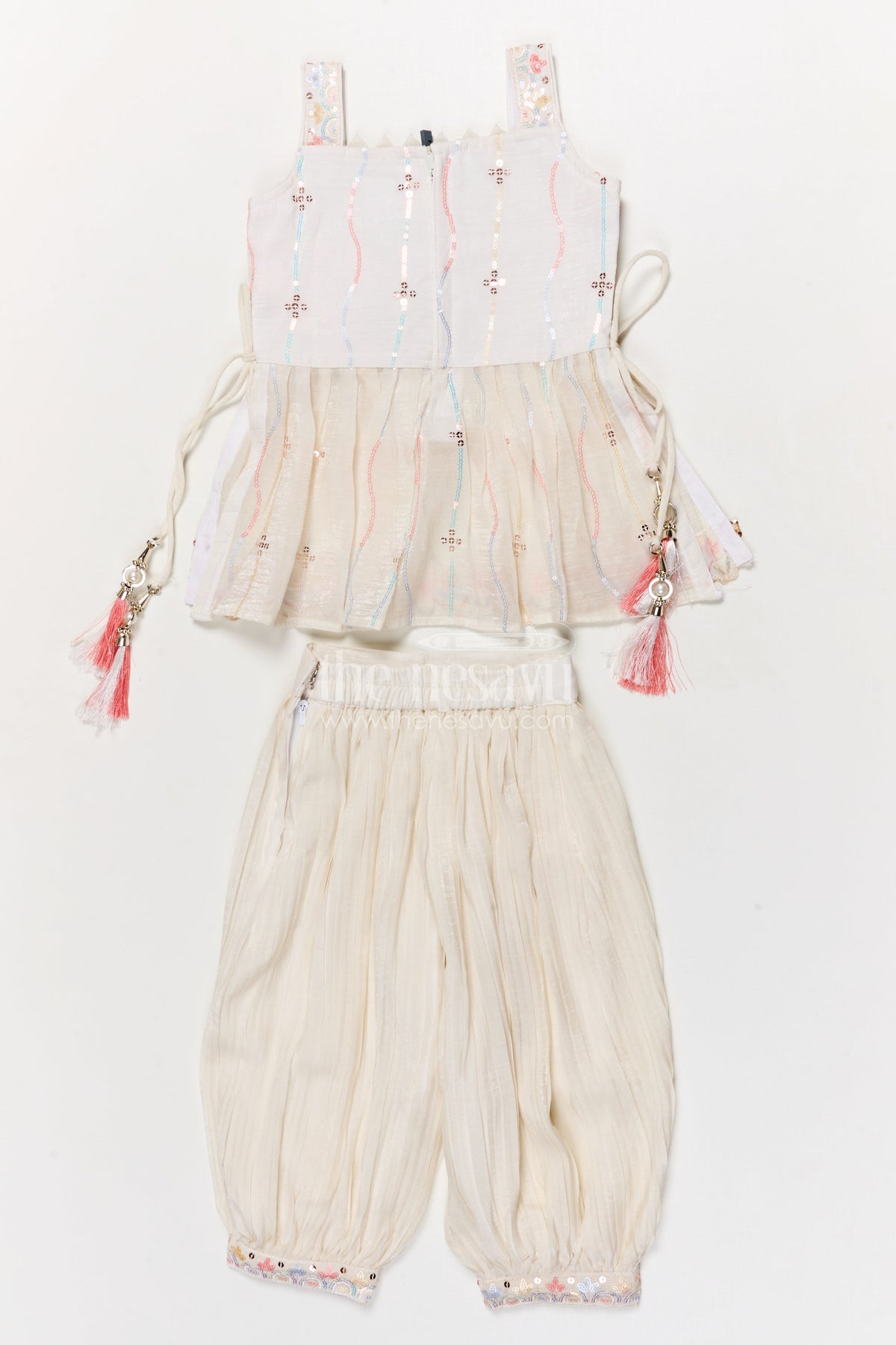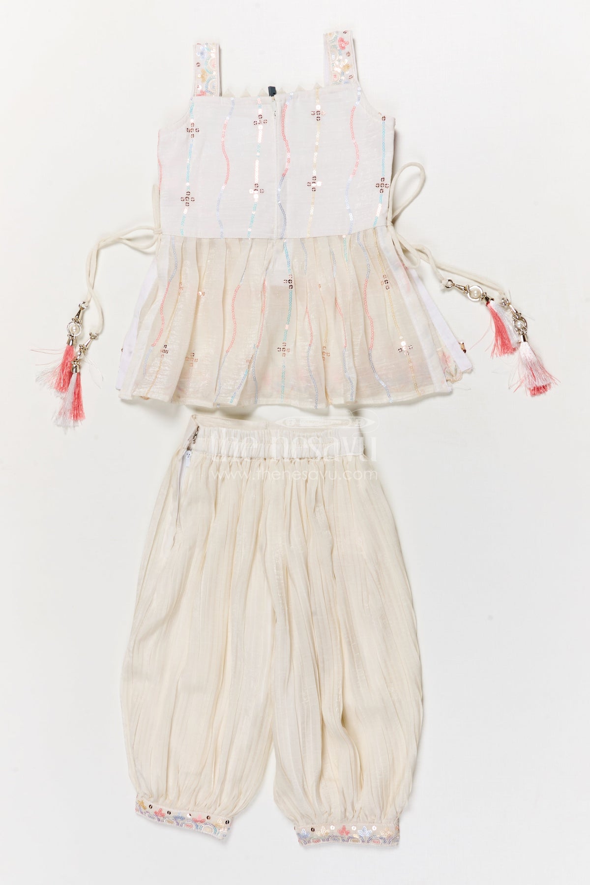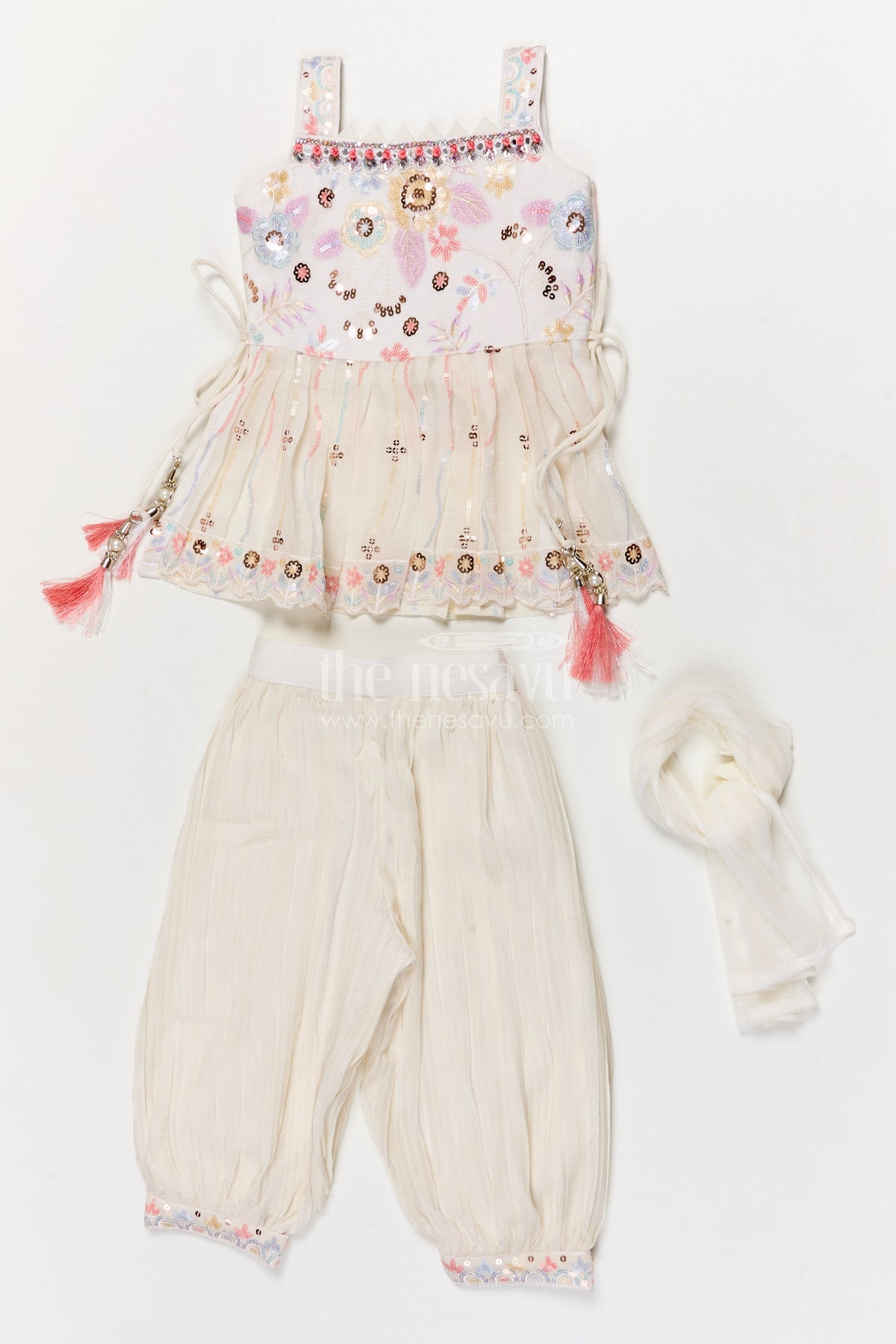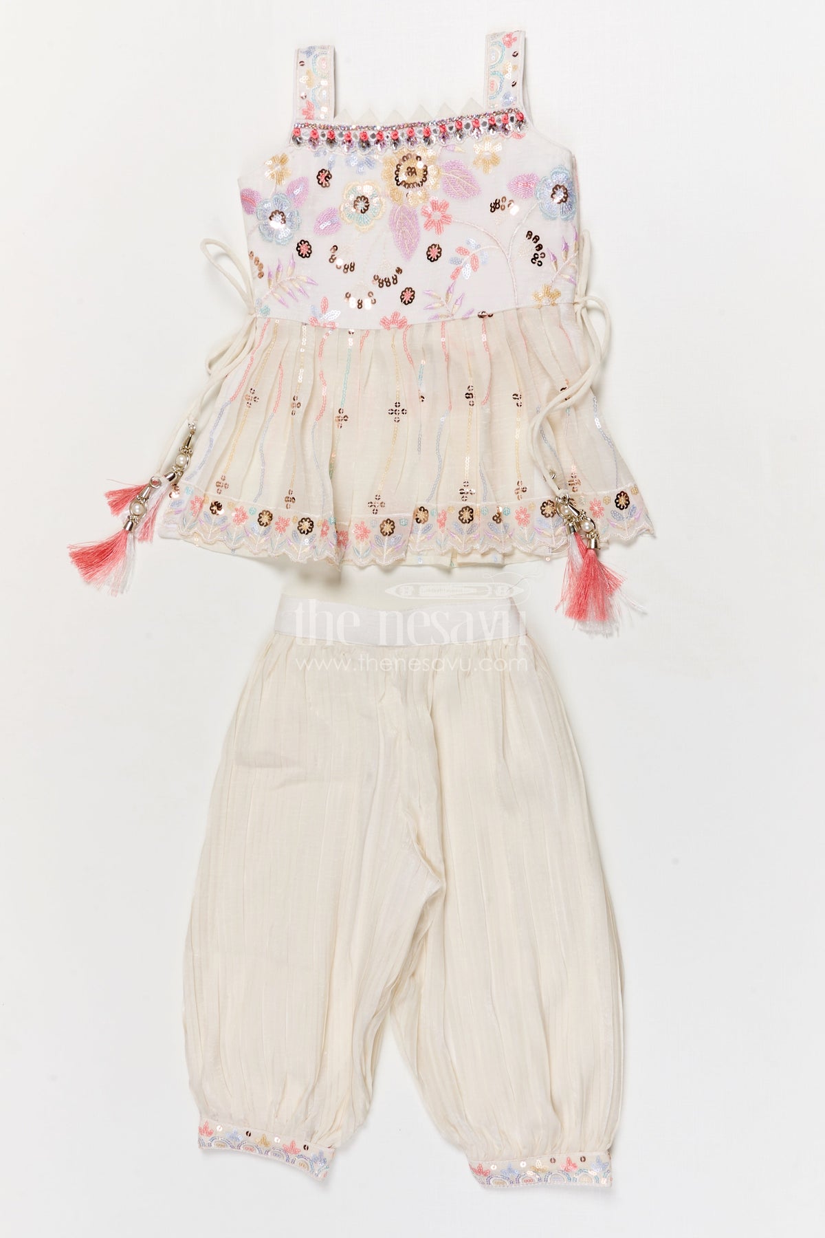 The Nesavu Girls Sharara / Plazo Set Cream Sharara Set for Baby Girls with Sequin Embroidery for Festive Functions Nesavu Nesavu cream sharara set for baby girls with sequin embroidery – ideal for festive and traditional occasions