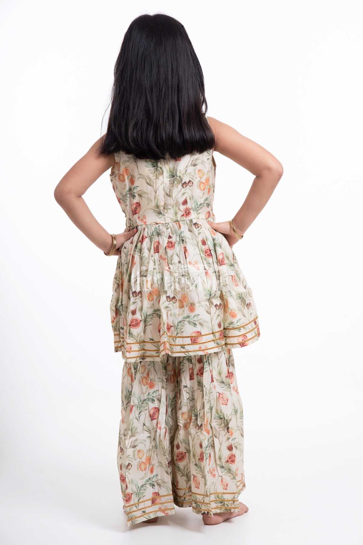 The Nesavu Girls Sharara / Plazo Set Nesavu Modal Silk Traditional Kurti Sharara for Kids Diwali and Dussehra Special Outfit Nesavu 16 (1Y) / Beige GPS315B-16 Nesavu Modal Silk Traditional Kurti Sharara for Kids | Diwali and Dussehra Special