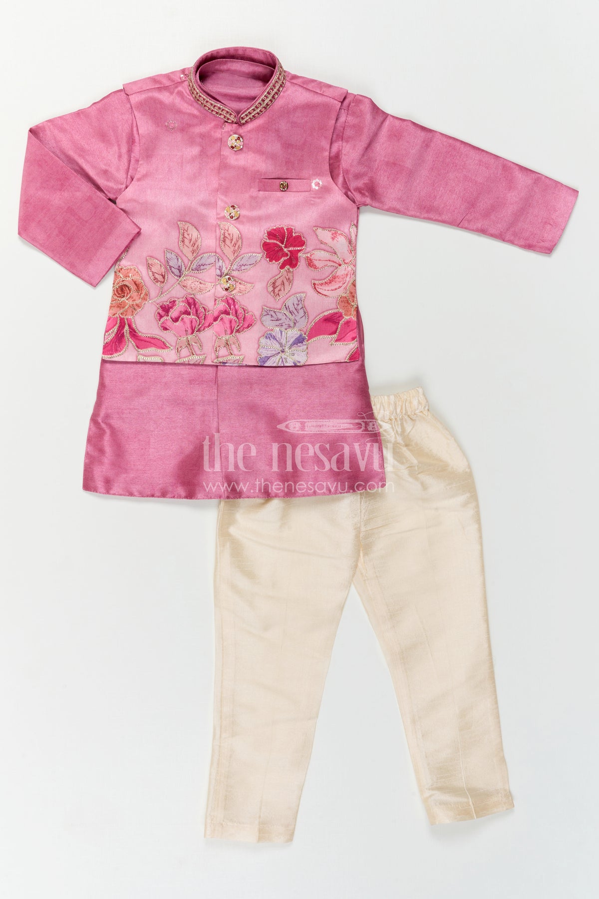 • This baby boy sherwani set for weddings is crafted to give your little one a rich and elegant traditional look