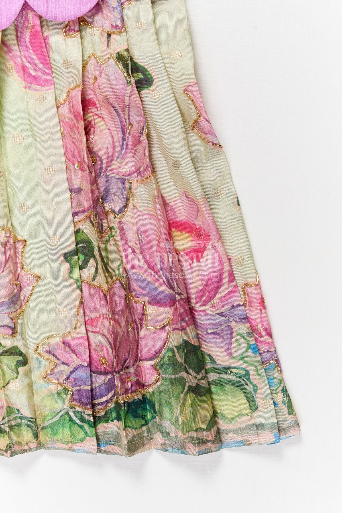 The skirt is made from semi Banaras tissue and showcases a dreamy floral digital print