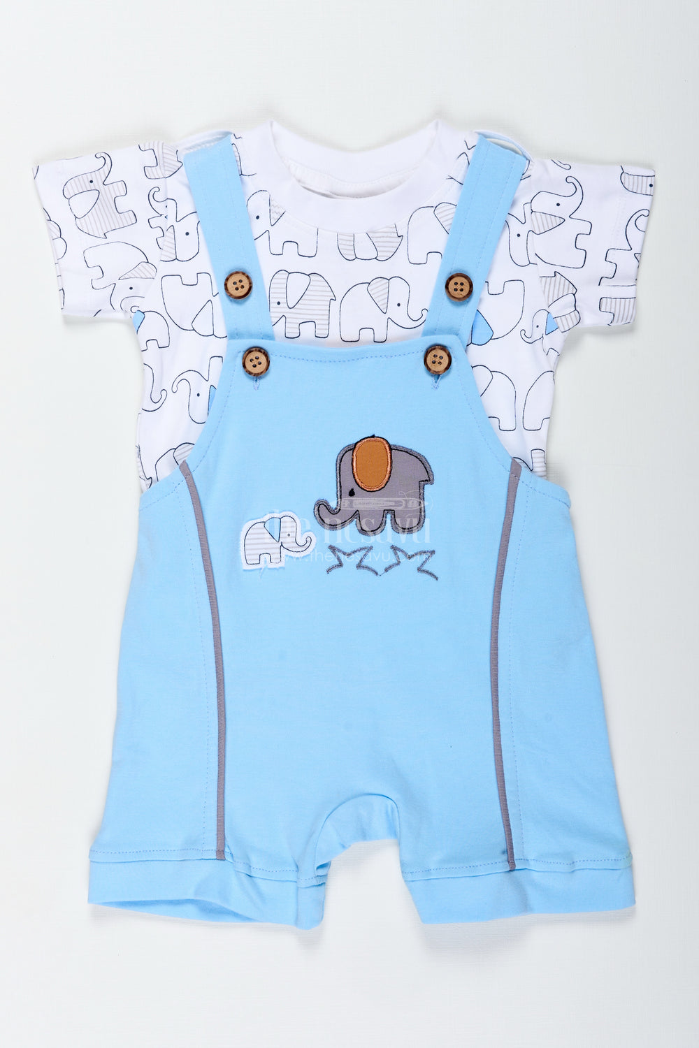 Boys Cotton Blue Casual Dress with Elephant Print and Dungaree Style for Everyday Adventures