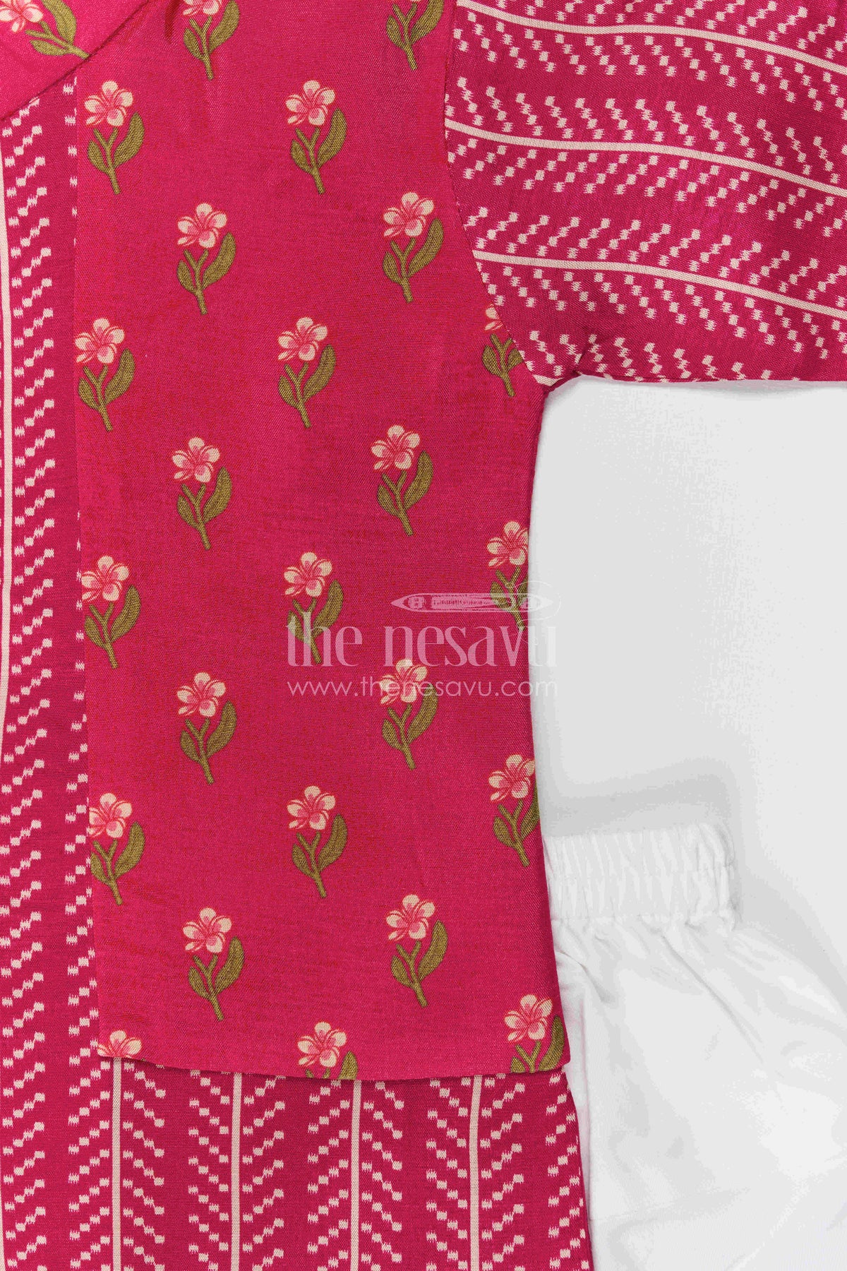 - Design: Digital printed top with matching dhoti