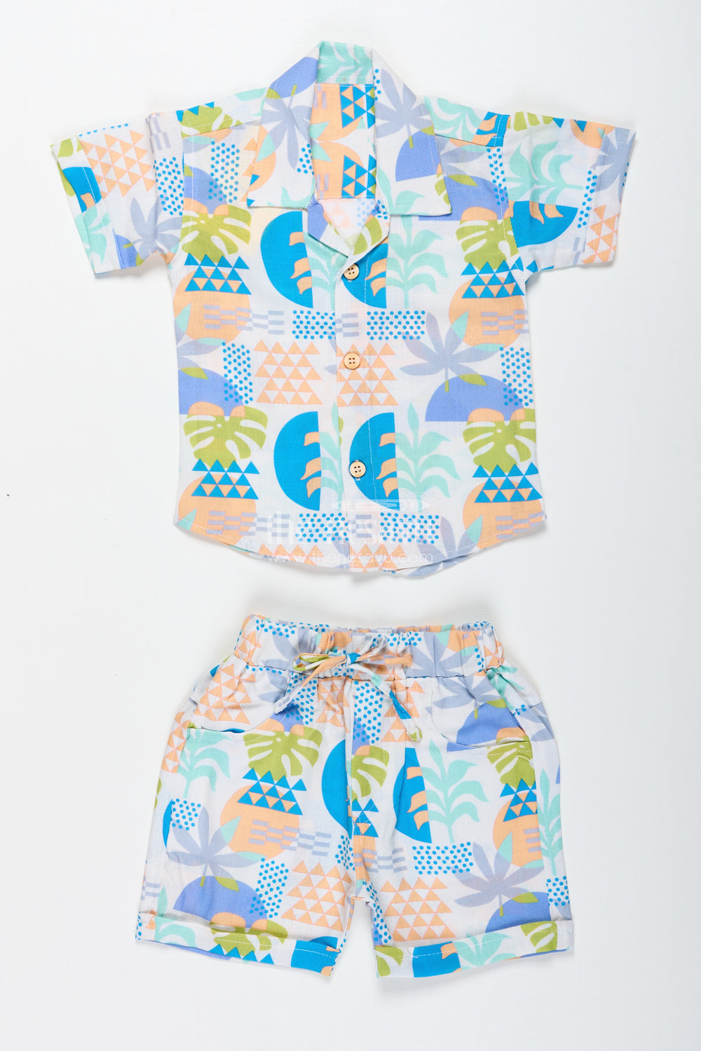 - A playful printed shirt and shorts combo made in soft, breathable cotton