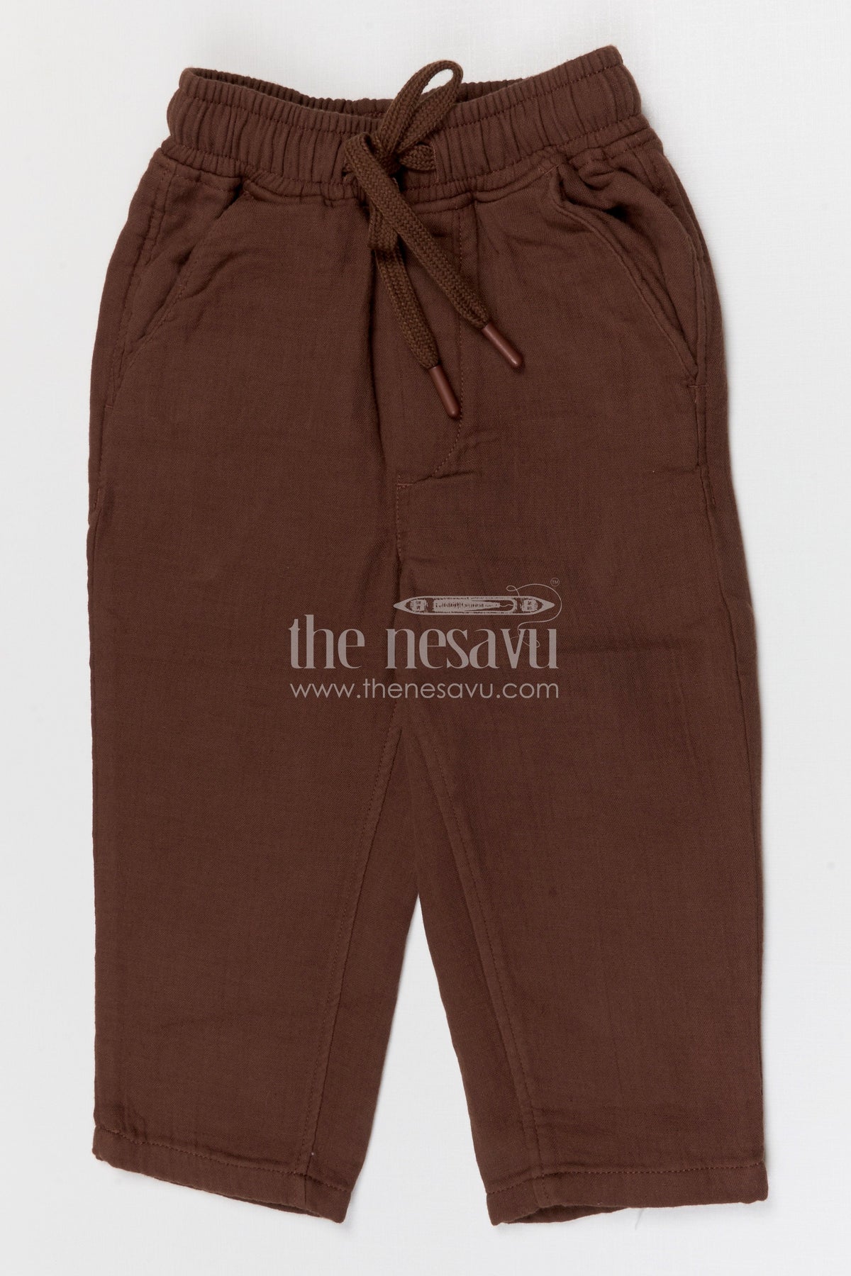 The Nesavu Boys Pant Boys Muslin Cotton Pants for Everyday Comfort and Casual Wear Nesavu 16 (1Y) / Brown / Muslin Cotton BWP031C-16 Nesavu boys muslin cotton pants for everyday comfort breathable kids casual drawstring pants