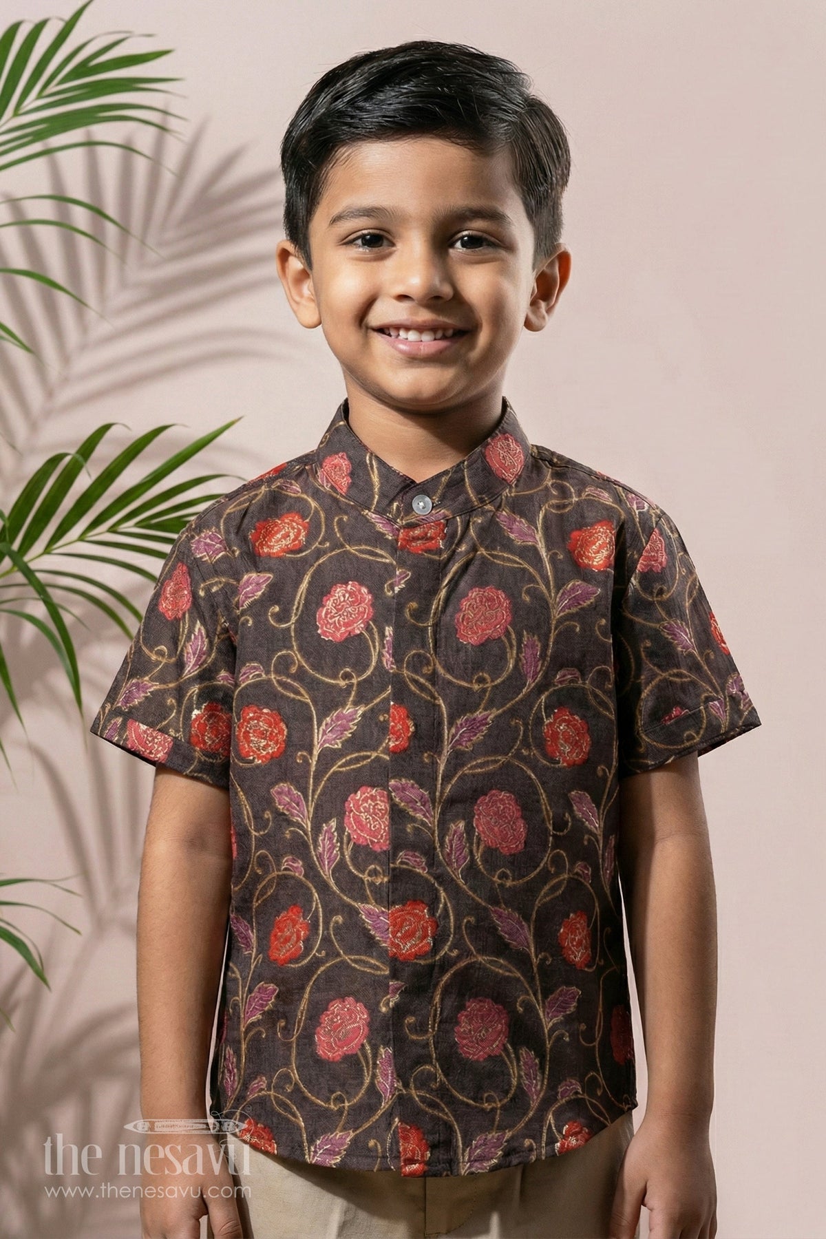 ஆடம்பரமான சிறுவர்கள் சாந்தேரி மலர் அச்சு சட்டை பண்டிகை & பாரம்பரிய உடைகள்