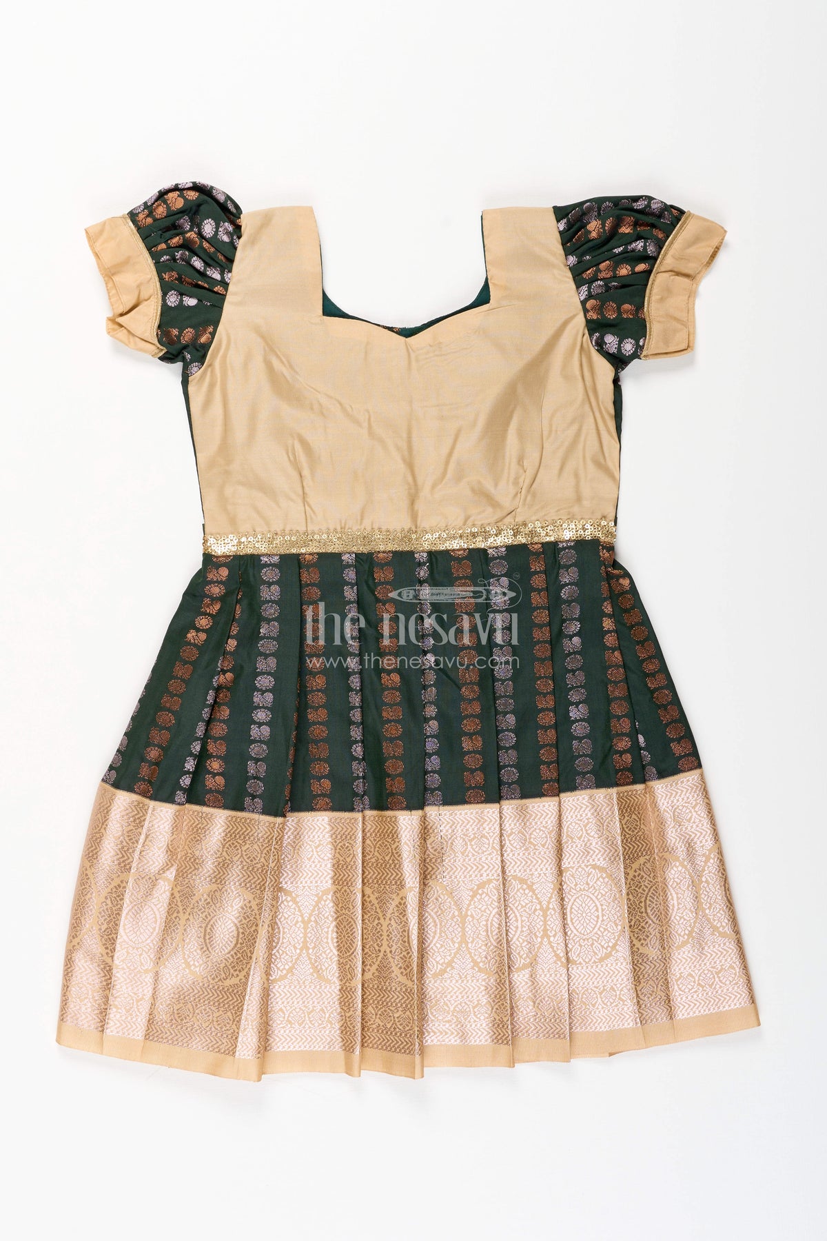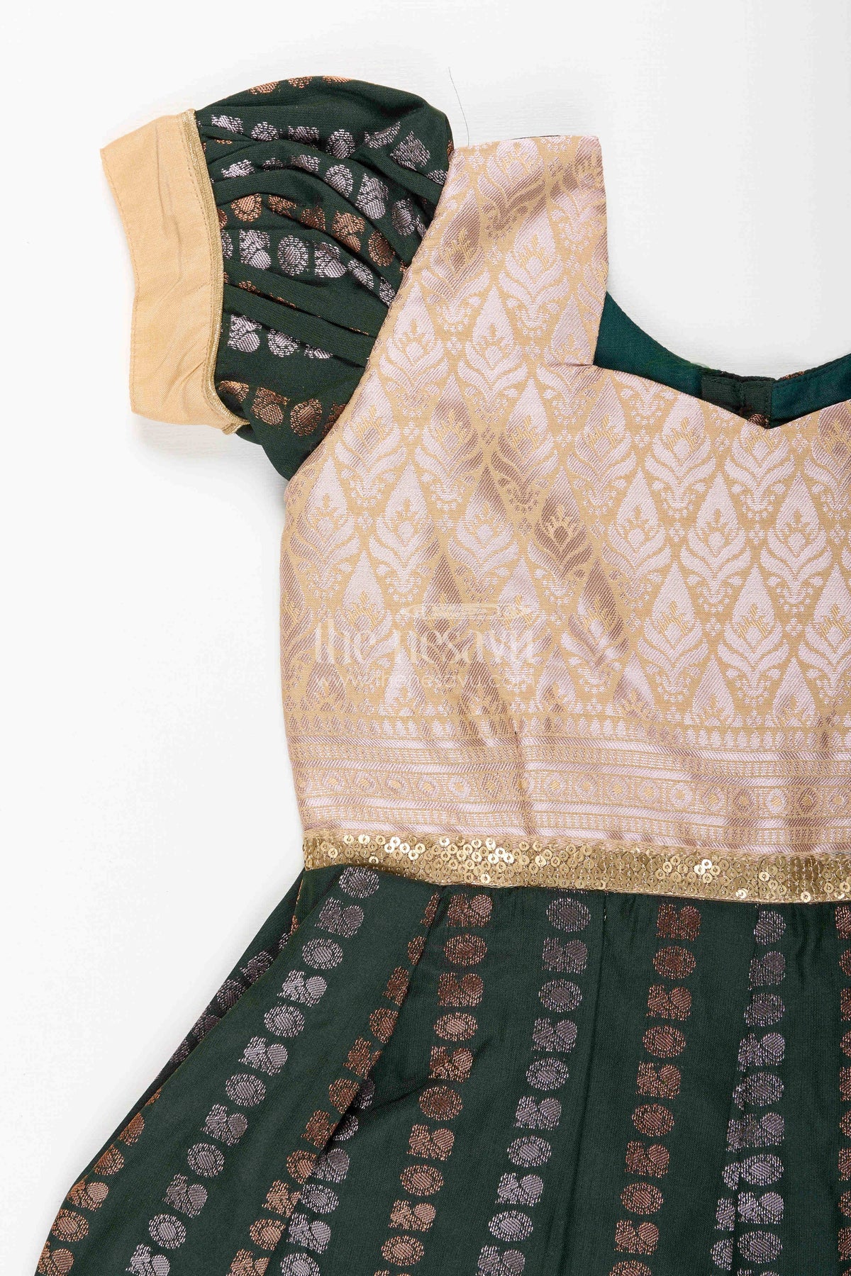 - இந்த பெண் குழந்தை காஞ்சிபுரம் பட்டு ஆடை பண்டிகை விழாக்கள் மற்றும் திருமண கொண்டாட்டங்களுக்கு ஏற்றது.
