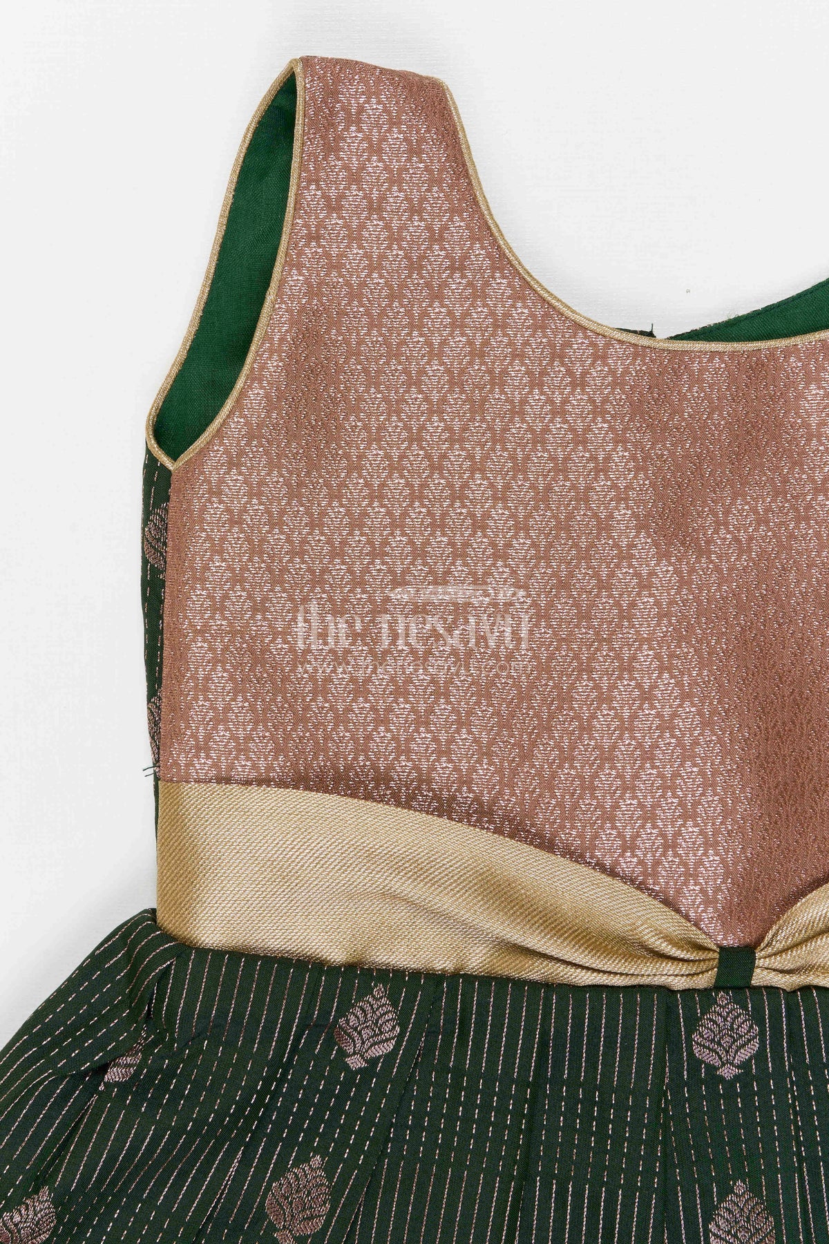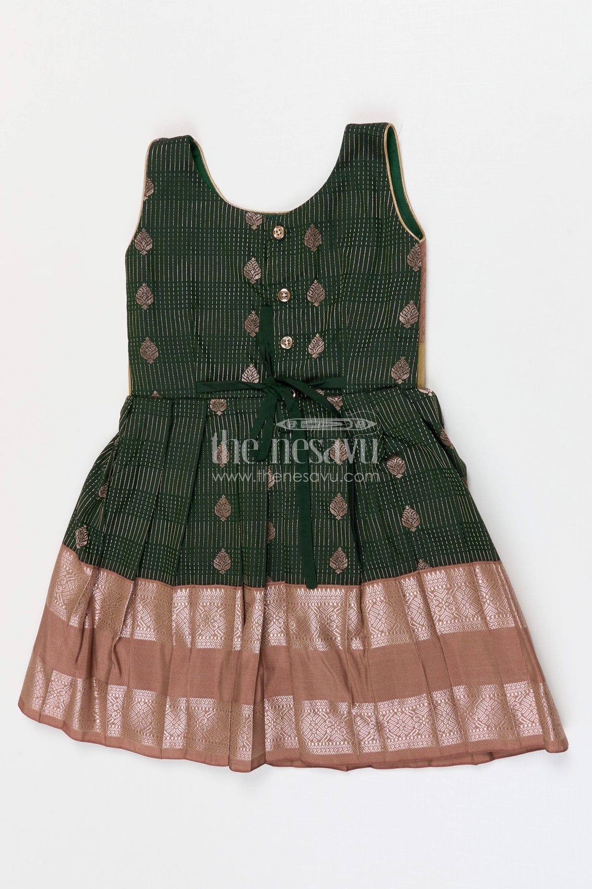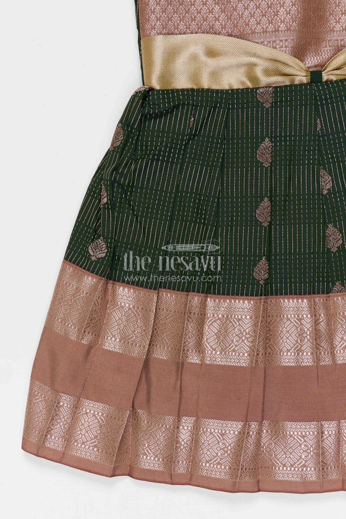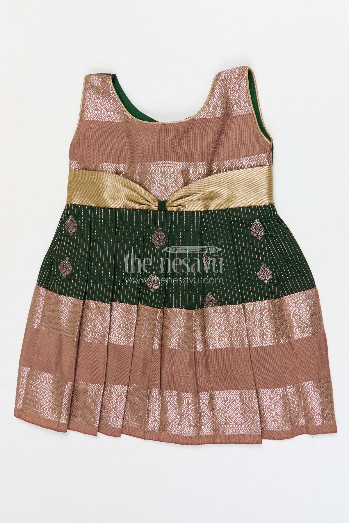 The Nesavu Girls Kanchi Silk Frock Girls Bridal Silk Frock for Weddings and Receptions Nesavu 10 (NB) / Green / Style 4 KSF022CD-10 Nesavu Girls Semi Bridal Silk Kanchivaram Frock For Weddings Receptions And Festive Occasions